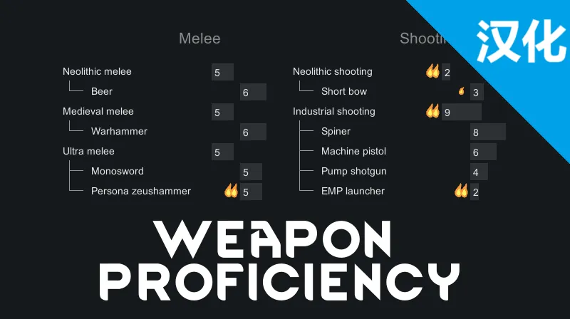 该Mod增加了武器熟练度系统。汉化不易,求个点赞。