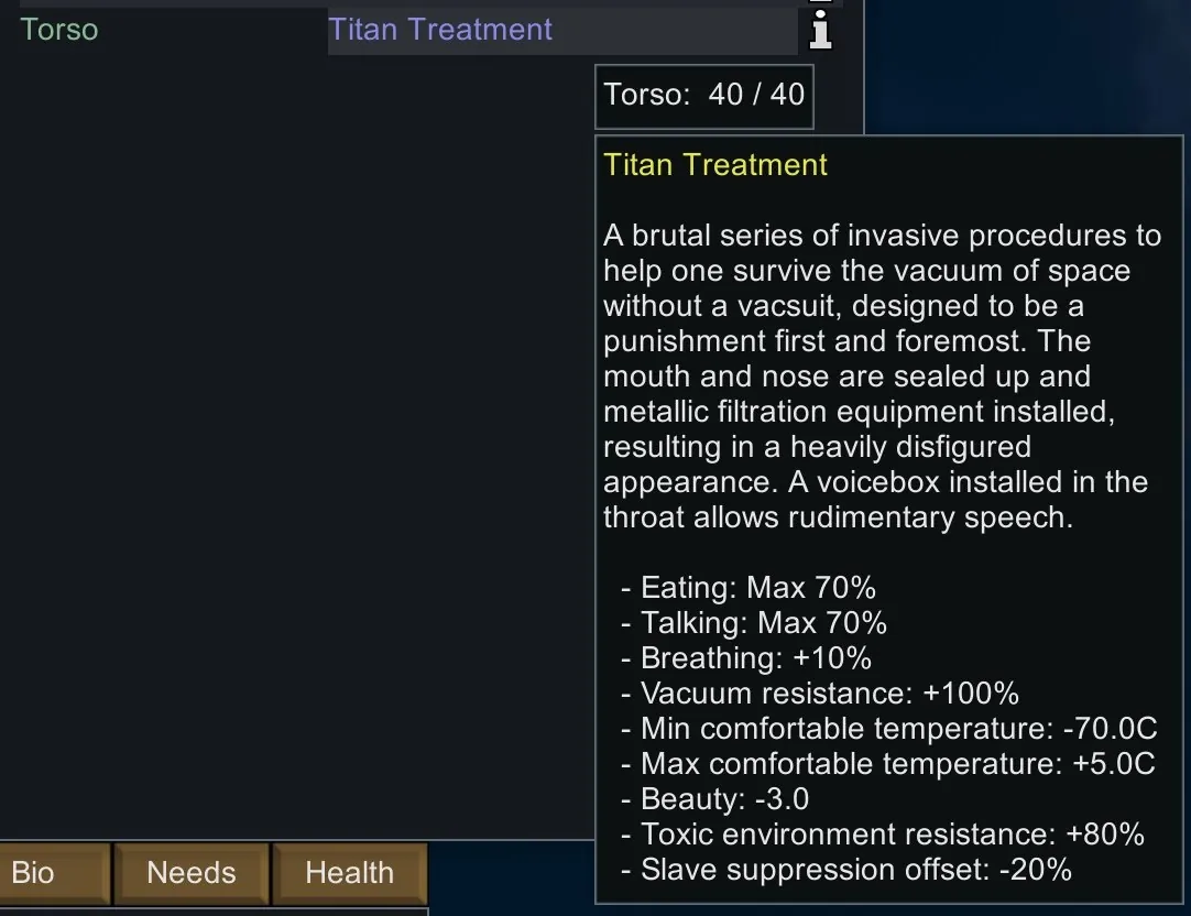 Adds the 'Titan Treatment' surgery from Judge Dredd, allowing pawns to survive in a vacuum without a suit... at a cost.