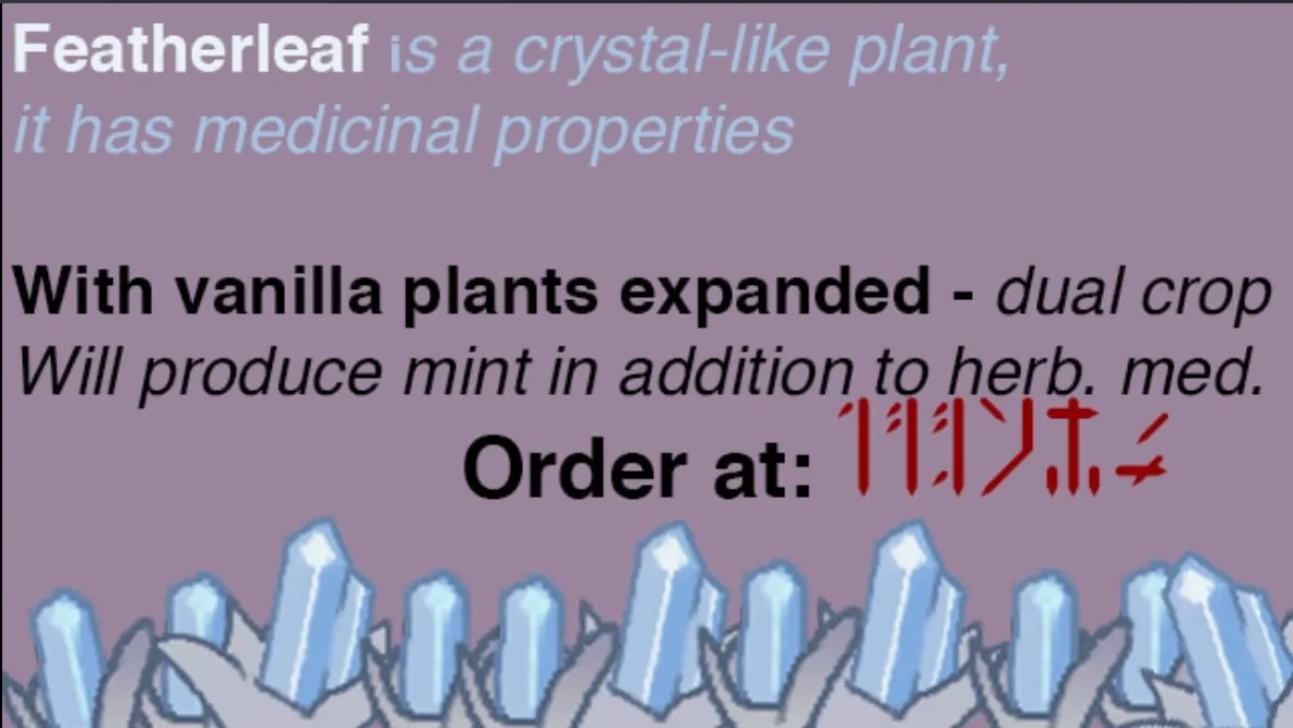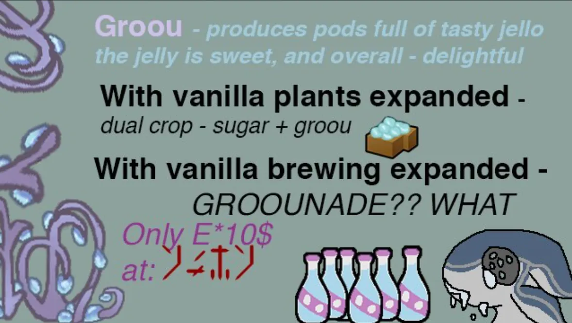 - There's a weird error about icebud having null nutrition. As far as I can tell it doesn't do anything. I couldn't figure out how to fix it, but I'll update it if I do.