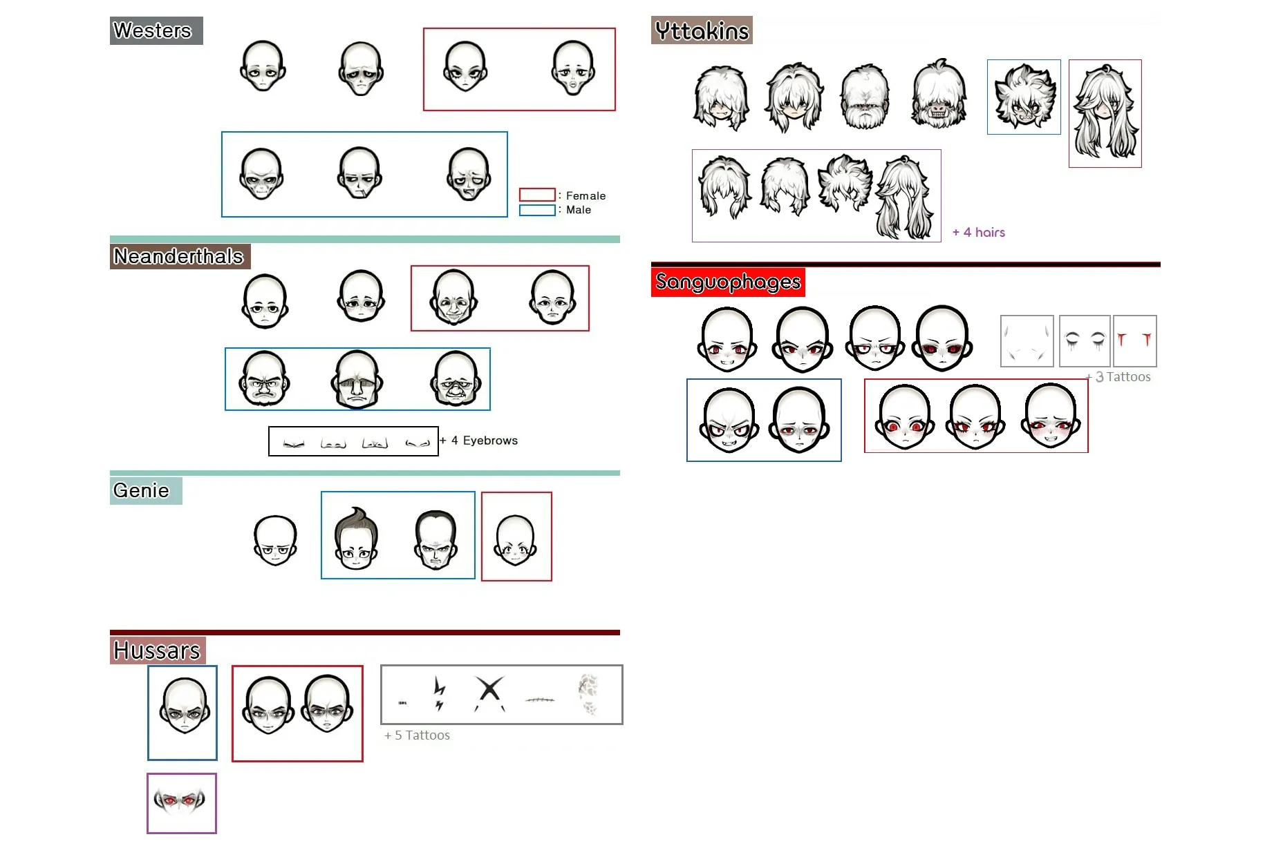 faces in this mod are designed to match each gender and xenotype concept, but except for a few, they are all displayed randomly.
