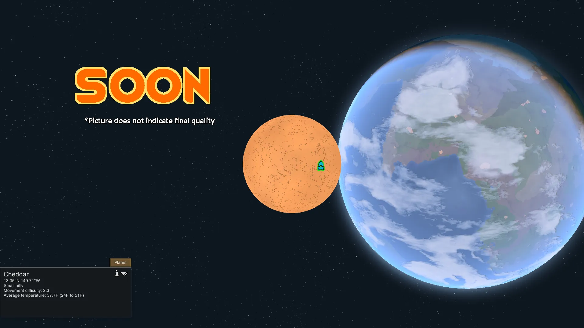 Unlike most biome mods, [b]this mod is save game compatible![/b] Although the planet will not suddently gain new biomes, one of the moons can eventually fall onto your planet. This will result in cheddar biomes appearing.