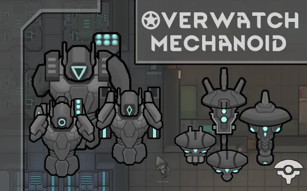 The Overwatch mechanoid was originally a mechanoid exclusive to the White Wolf, and was modeled after the Tau drones and battlesuits from Warhammer 40K. However, it did not fit with the White Wolf, so it was released as a separate mode.