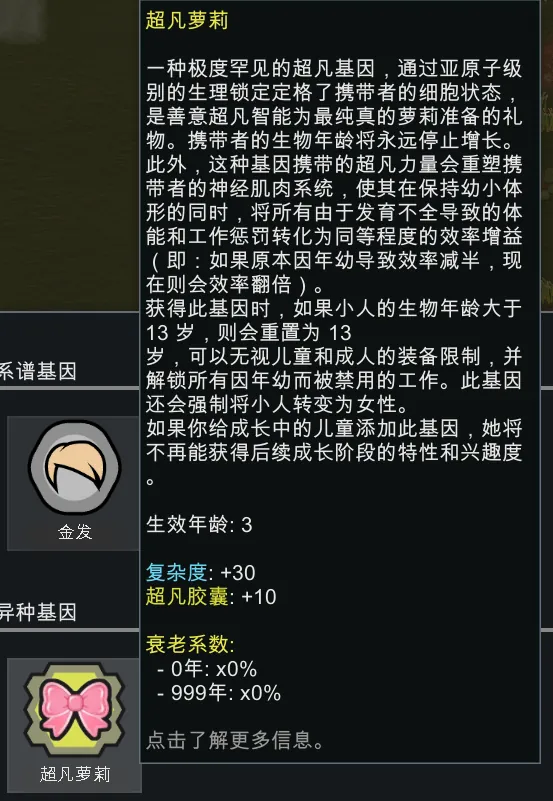 - Age Lock: If a pawn is older than 13, receiving this gene instantly reverts them to biological age 13.