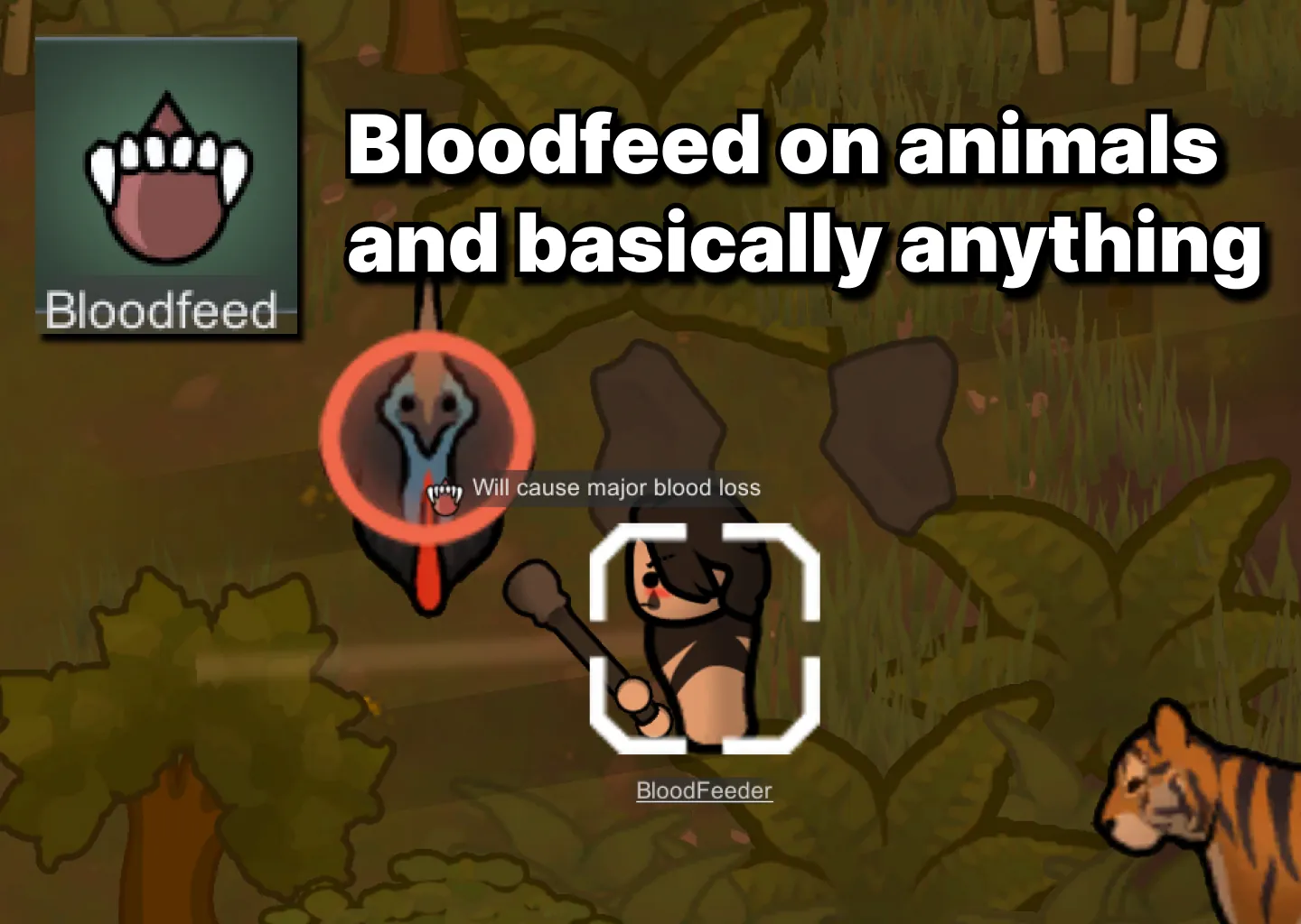 Allows Bloodfeed to target any fleshy pawn (animals and other non-human flesh), instead of only humans.
