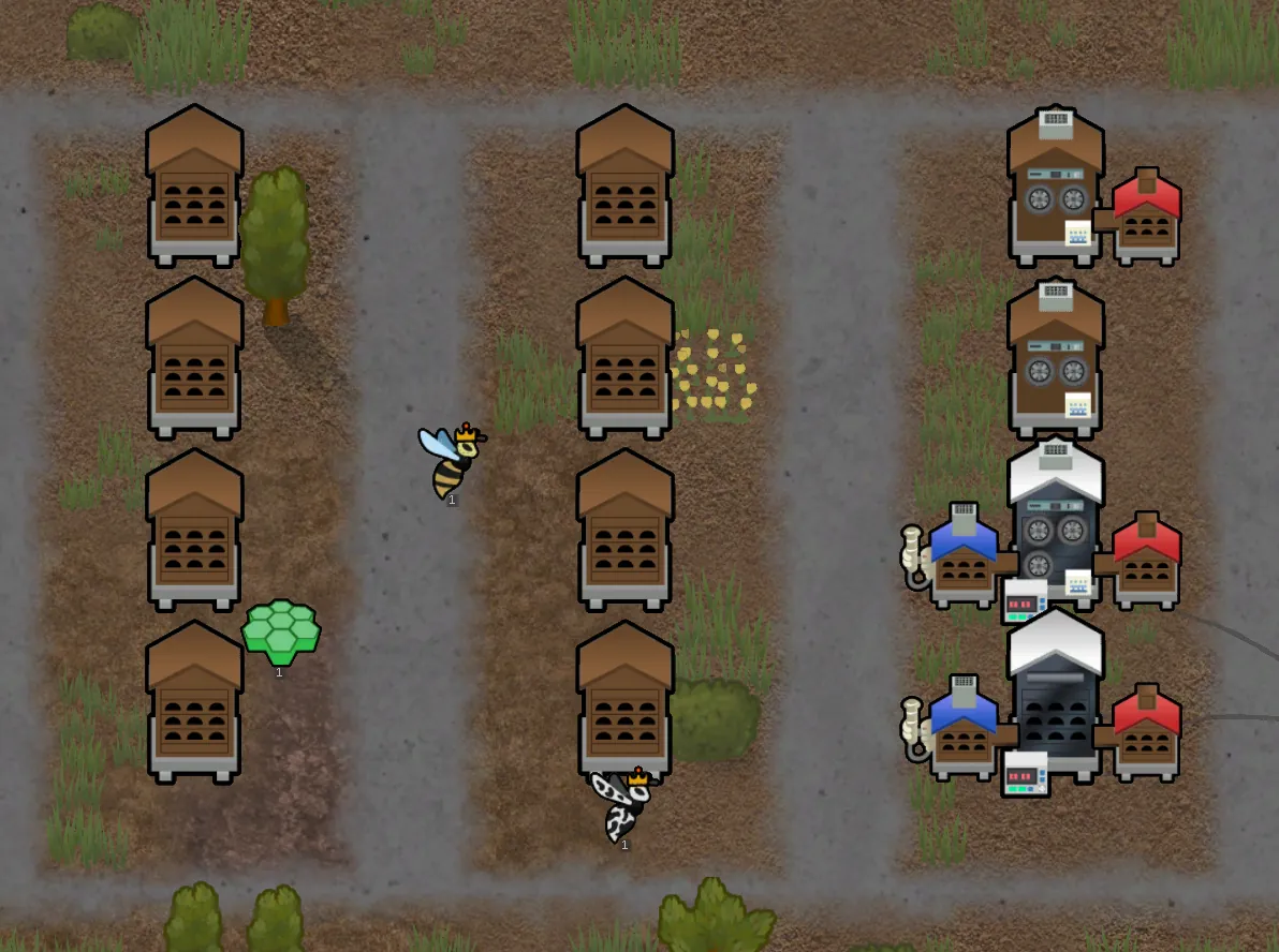 - Resource gathering: many of the bees produce combs with more things than honey and wax. Will you find the Luciferium-producing bees?