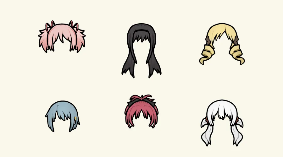 Adds the characters' hairstyles from Puella Magi Madoka Magica The hair color must be set to white. Add: • Madoka Kaname • Homura Akemi • Mami Tomoe • Sayaka Miki • Kyōko Sakura • Nagisa Momoe