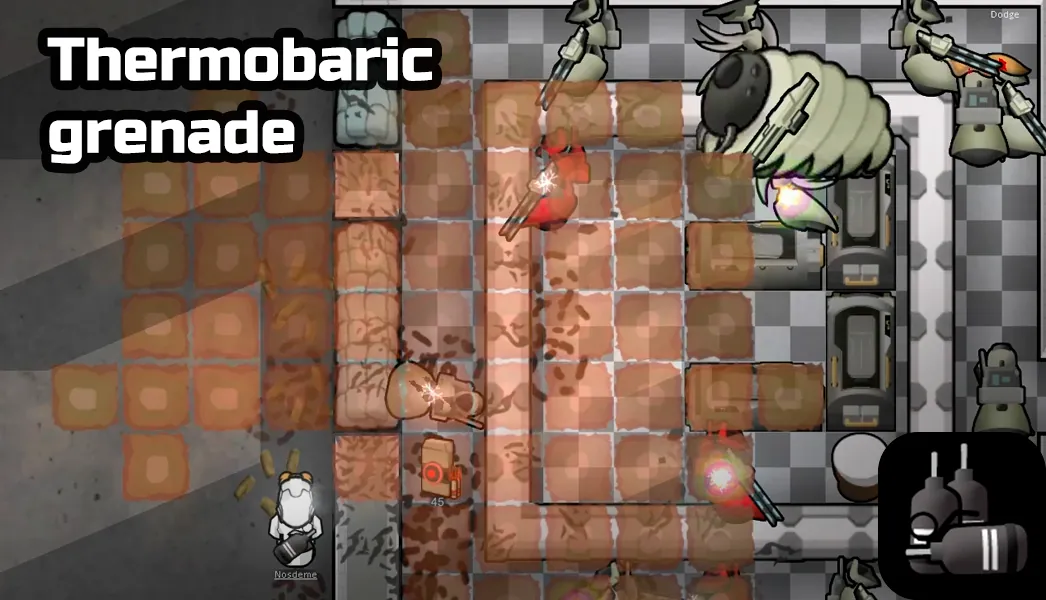 This grenade is a stronger, more expensive alternative to the frag grenade. Instead of peppering the opponent with frags, thermobaric grenades rely solely on the powerful explosion. Will perform better against bunched-up groups of armored targets, but requires more resources to make and inventory space to carry.