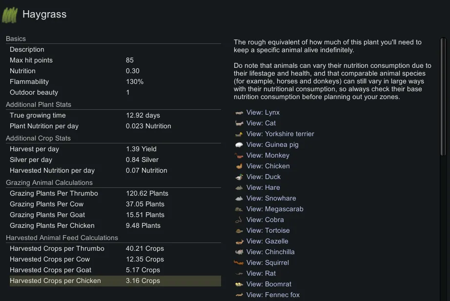 [*] [b]Crops per pawn[/b] - how much of a specific nutritional crop you'll need to sustain one baseline pawn with no additional factors.