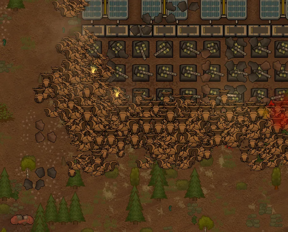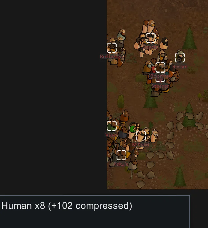 Instead of fully simulating every pawn, each pawn represents a "squad" of many raiders instead, meaning the game only has to simulate a fraction of the pawns involved in a raid. For each member of its squad, this pawn attacks faster (up to 5x). Every time this pawn would be killed or downed, a member of its squad is killed instead, and the pawn's combat bonuses reduce accordingly.