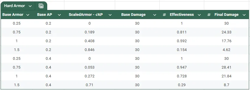 - Weapon Hardening: Makes AP matter more. Just because you are hiding in an armor shell does not mean an anti-material rifle cannot still say hello to your innards...