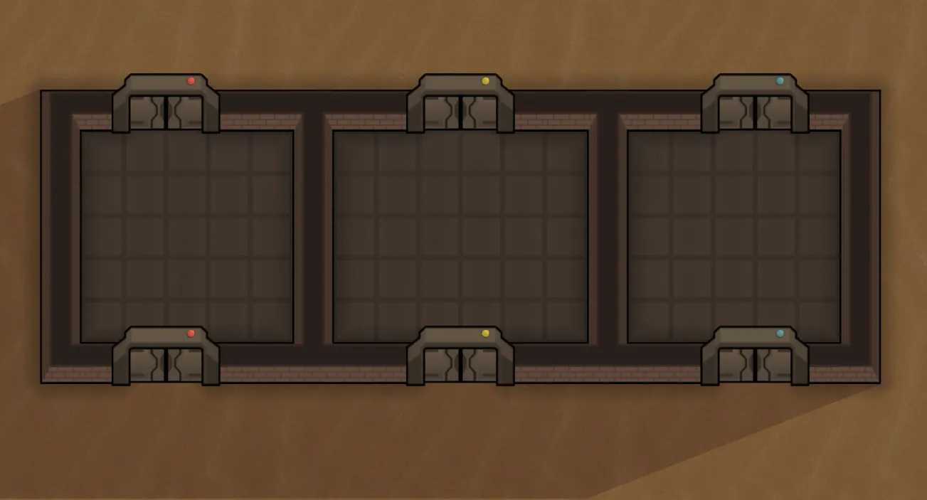 Doors are assigned to a sector, red, yellow, or blue, and each sector can be locked down individually or the entire map can be locked down at once.