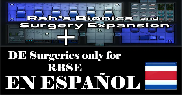 Añade la traduccion al español de los mods Rah's Bionics and Surgery Expansion y DE Surgeries only for RBSE. Depende del mod de Rahs para ser usado, si no instalan el DE Surgeries igual funciona