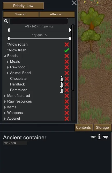 Adding this mod along with LWM DeepStorage to an ongoing save file will cause issues with any Ancient Storage Buildings already on the map.