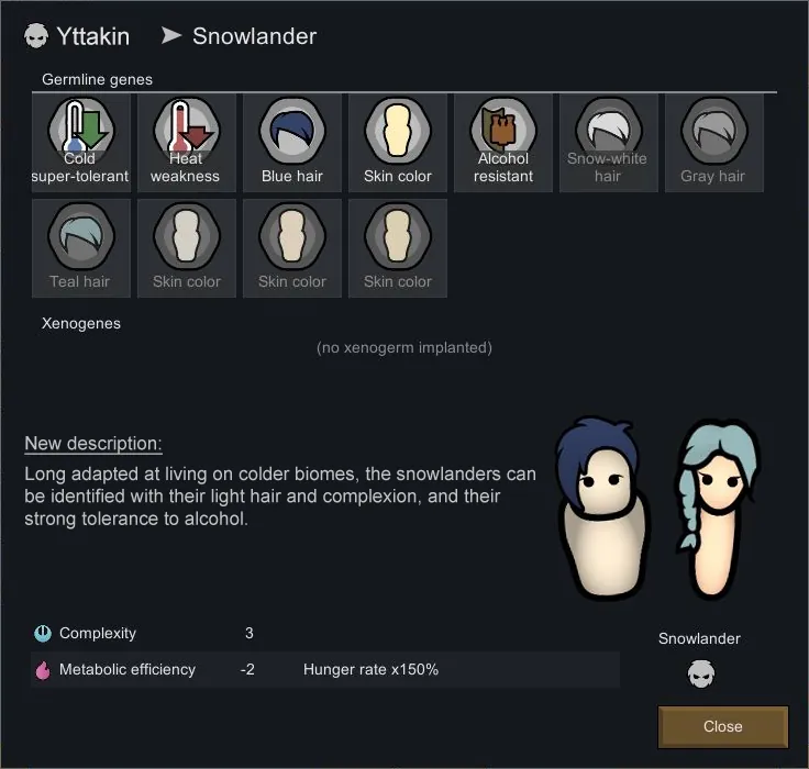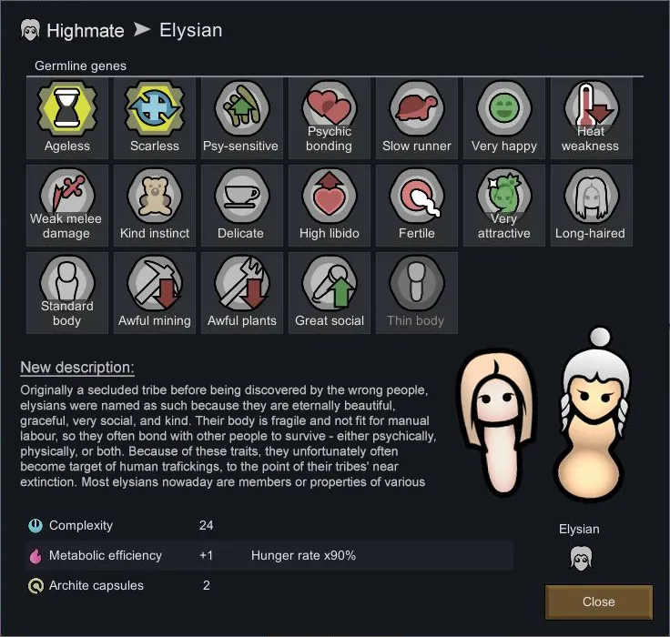 They are remade to be more of basic difference because of environtment/lifestyle rather than straight up gene modifications, but because this is just a simple genes patch, they still need to be in-line with the game's rule. That means the now normal human Snowlander still have names like Kyn'kittsyht Bttyty, the Elysians are still oppressed, Spartans are rare and scattered instead of having their own faction, and etc.