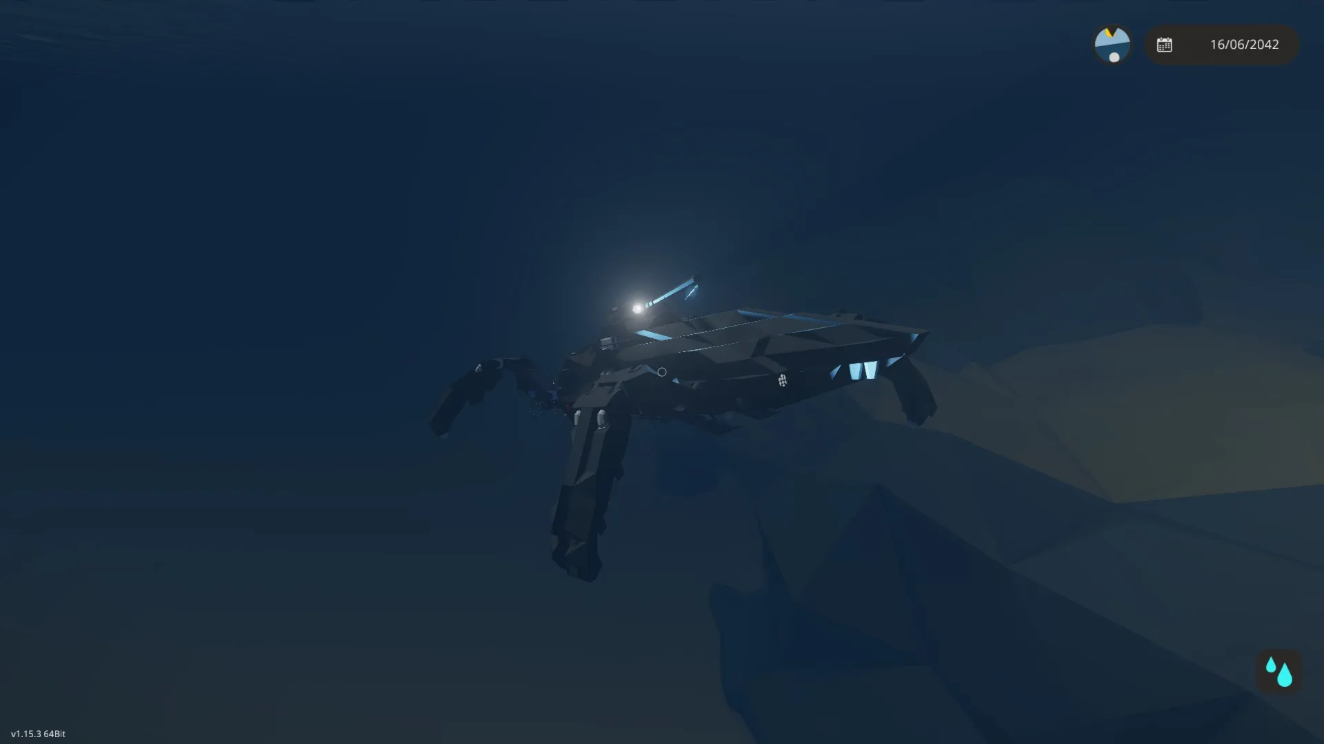 This creation created mostly for water and underwater explorations but with time got its ability to walk on land too. Also its have turret on its roof wich have radar aim with ballistic calculator but also with manual aim mode (which is default option). It moves pretty slow and have mobility problems while walking on land but shows pretty good results in water.