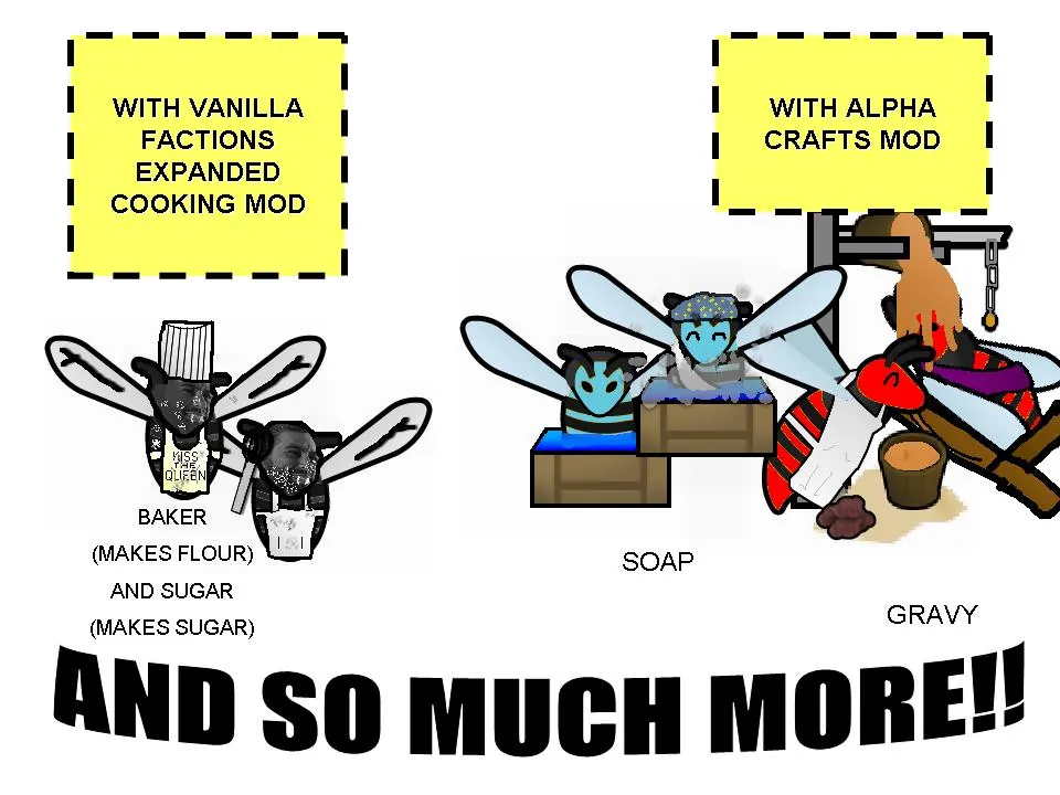 * [url=https://www.steamcommunity.com/sharedfiles/filedetails/?id=2134308519]VANILLA FACTIONS EXPANDED COOKING MOD[/url]