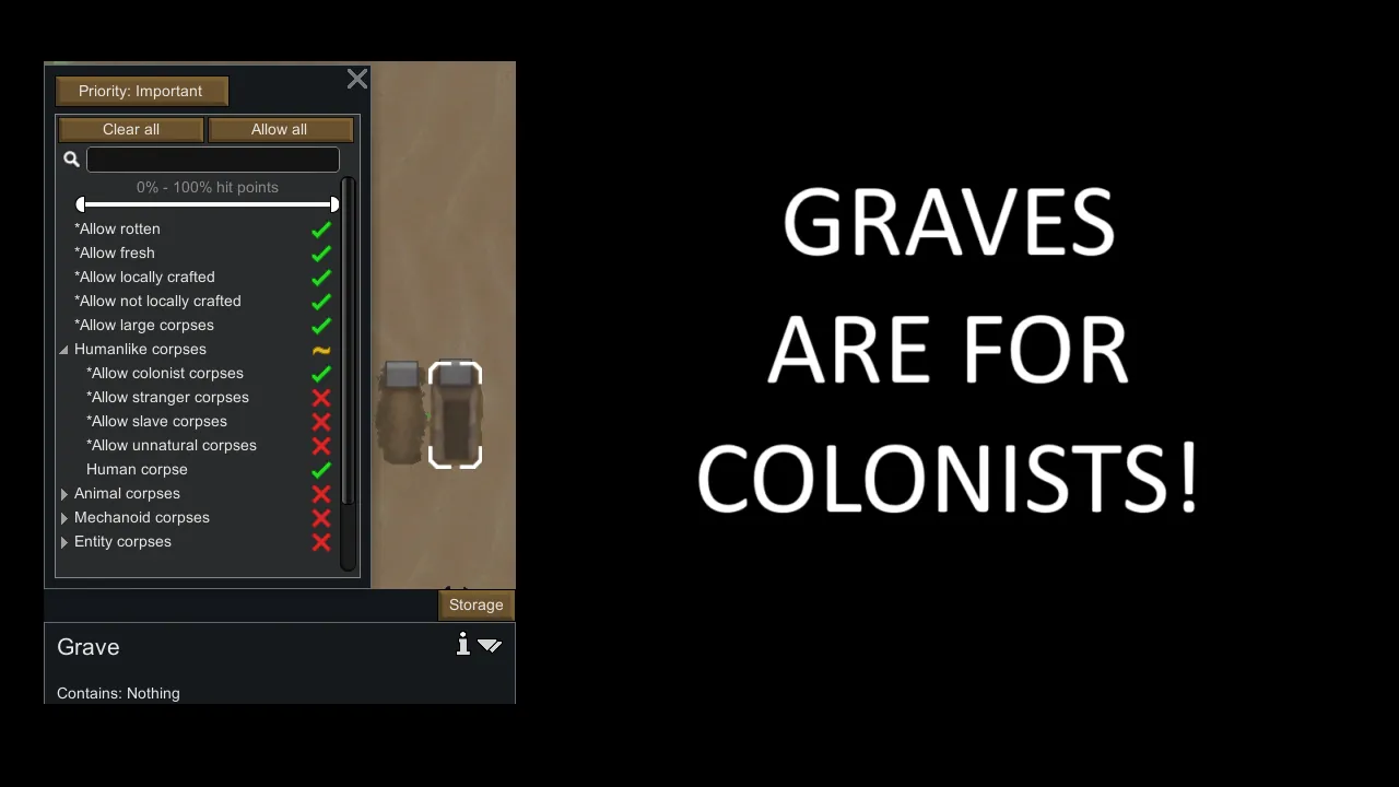 Well now the grave will default to allowing colonists ONLY.