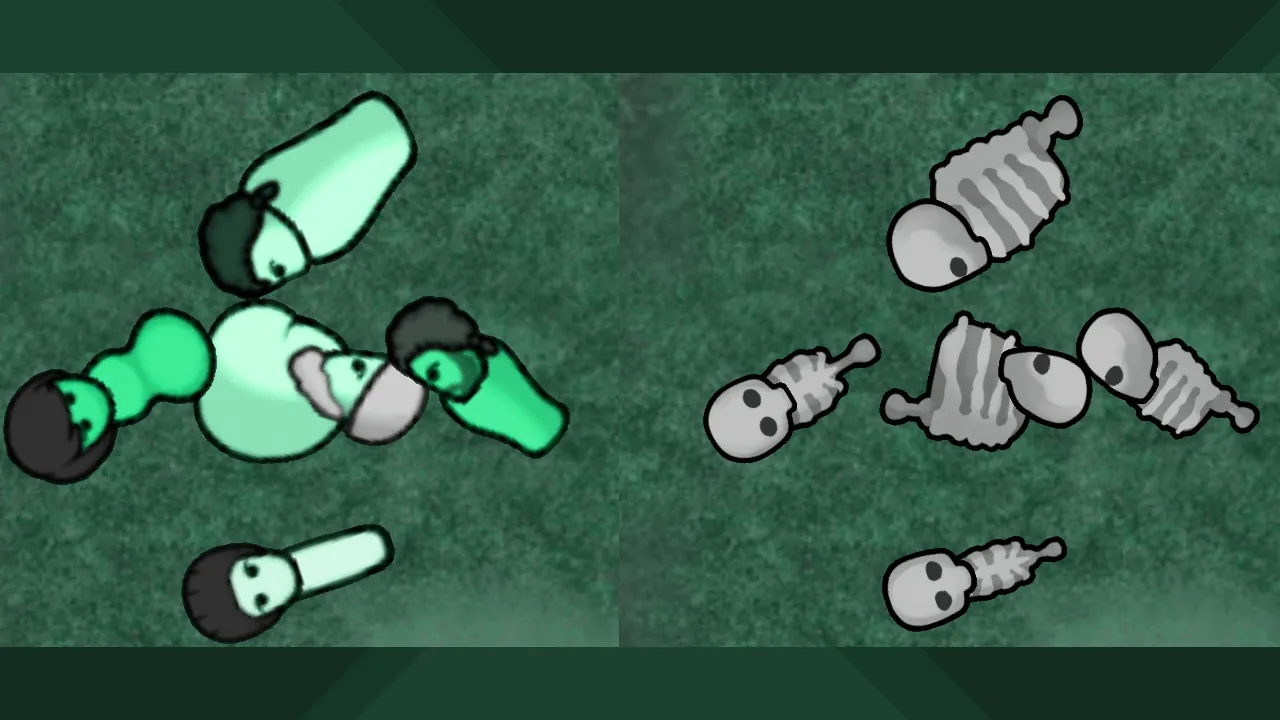 This mod replaces the vanilla boring two skeletons and one skull with a skeleton for each bodytype + two skull shapes instead of one.