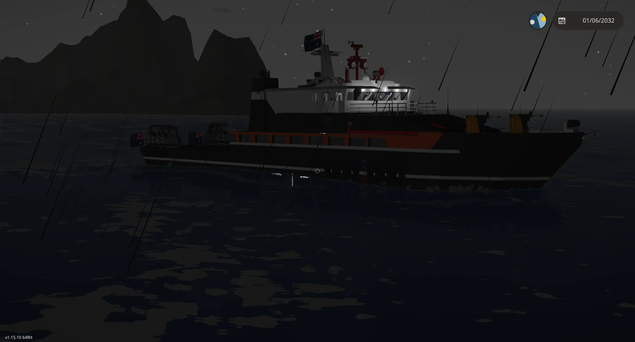 Has two water jets, two small IRBs on the deck, a control room, dorms, upcoming medical bay and a sophisticated control deck.
