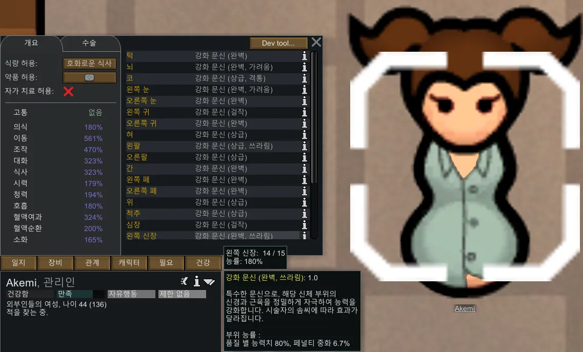 Depending on the level of medicine available in your colony, you can enhance parts from limbs to vital organs such as lungs, kidneys, a heart, or even the brain.