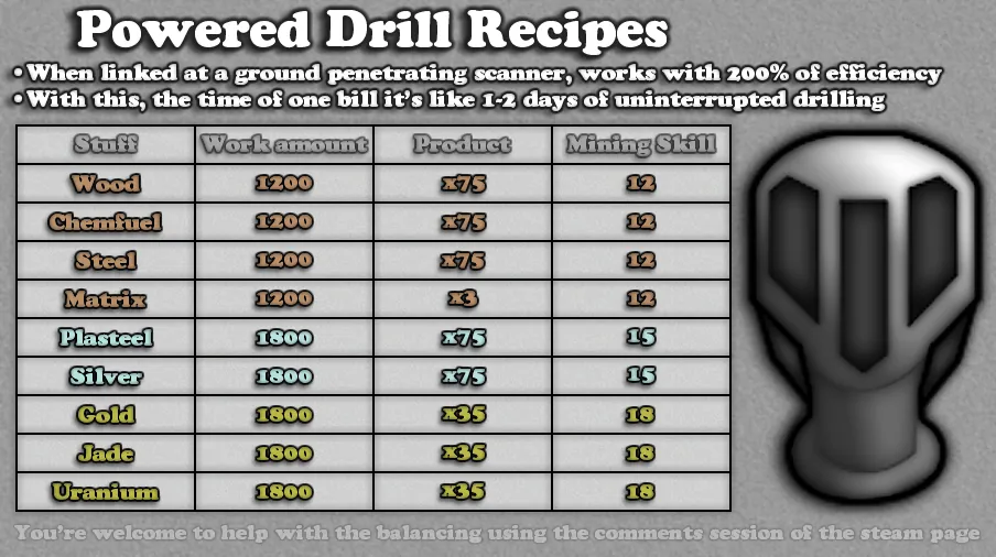 [b]Powered Drill[/b] ([i]For infinite generation of resources[/i])