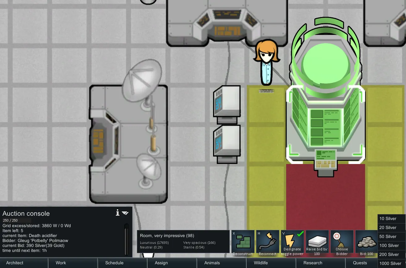 if timer run out with your pawn as the last raise, the corresponding amount of chosen payment type will be deduct from your stockpile within range of trade beacon, then your item will arrive in dropped within 20 cell radius of