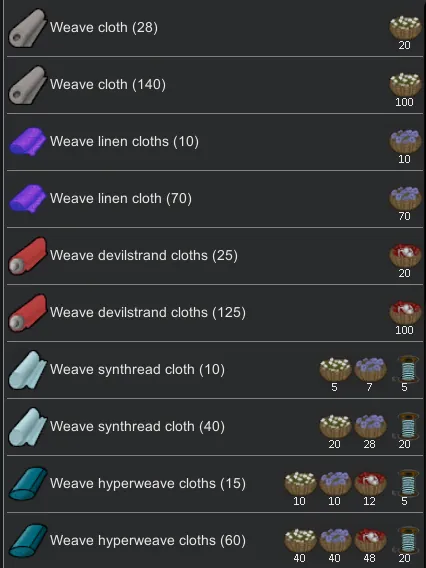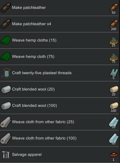 -Adds plasteel thread. Used to make high-end cloths.