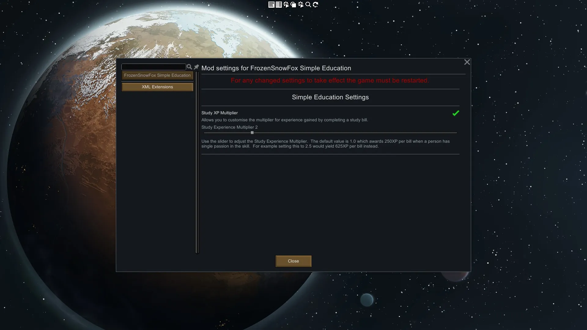 Simple Education provides you with a simple and easy way to educate your people in any skill. To have someone study you need to assign them to the Study Worktype. The Worktype is available to everyone and can be done by children as young as three years old. After assigning the Worktype place down a Study Spot and set a study bill. Like regular bills you can set the number of times to do it, and set a skill level range or assign it to a person.