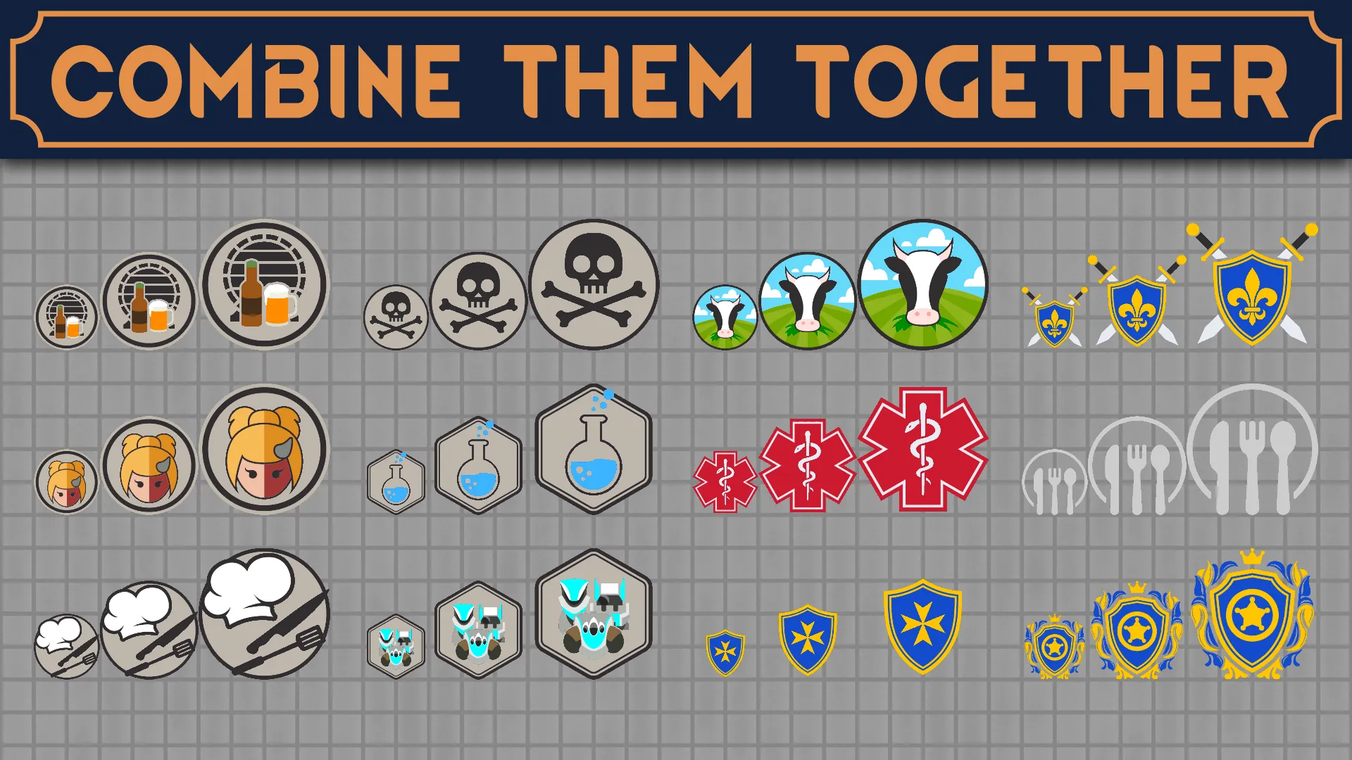 Choose from [b]7 bottom layers[/b] and [b]43 top layers[/b], combine them together to create your own [b]floor icons[/b].