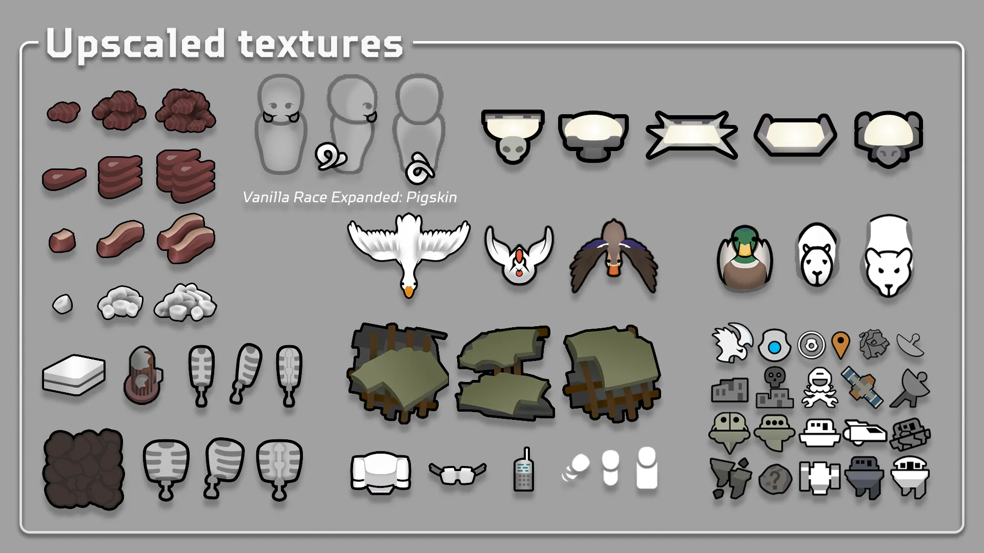 Provides hand-drawn upscales for just about every texture not covered by Vanilla Textures Expanded (go get that one) or any of the mods in the HDWorld retexture list. (provided in the featured collections).