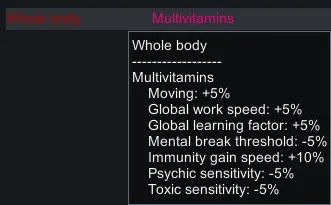 Adds more medications to Rimworld. For those who need more than squirrel meat and