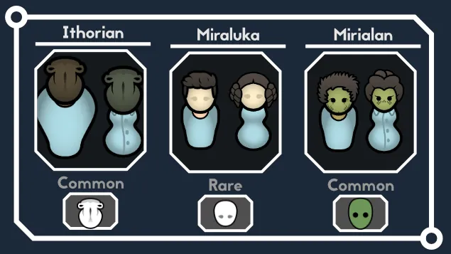 Outer Rim standalone module adding a vast array of new races to the game through Biotech's xenotype system. This includes a handful of genes for head types, abilities, skin colours and other things that felt necessary to make the races work. They are all patched to spawn throughout the vanilla outlander and raider factions, and will be patched into suitable Outer Rim factions in time if not already.