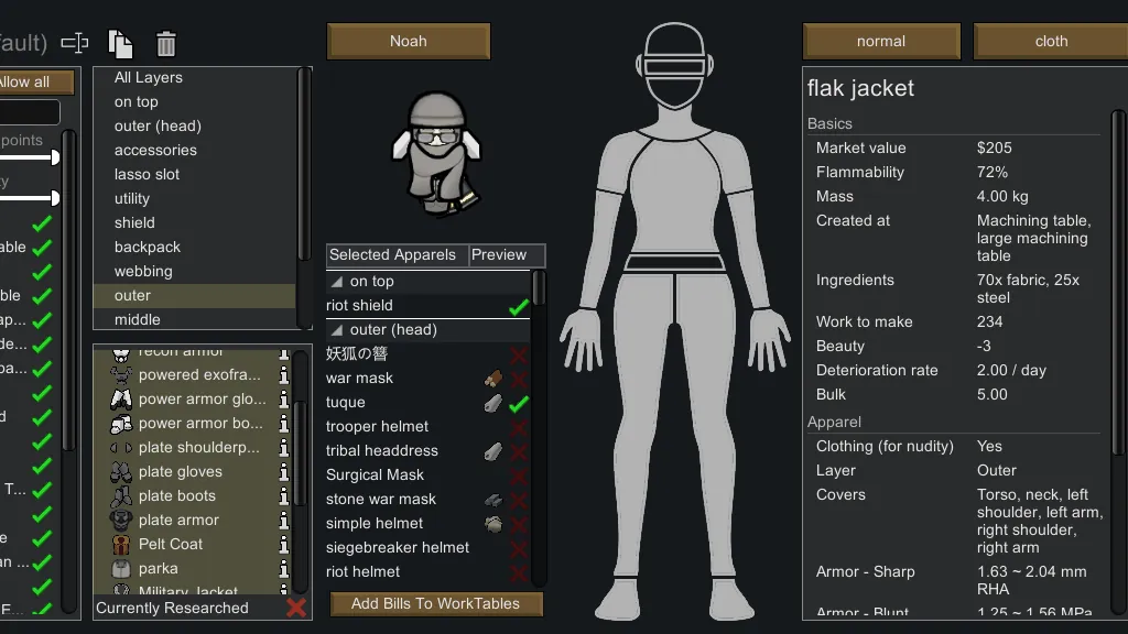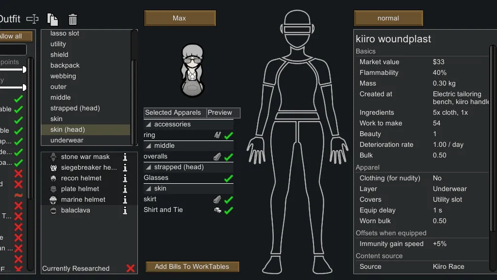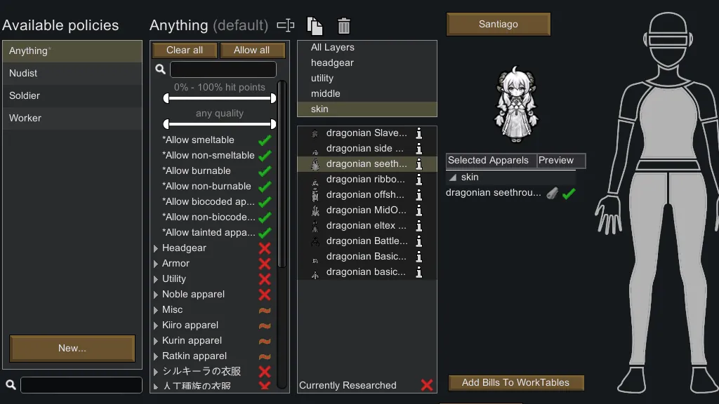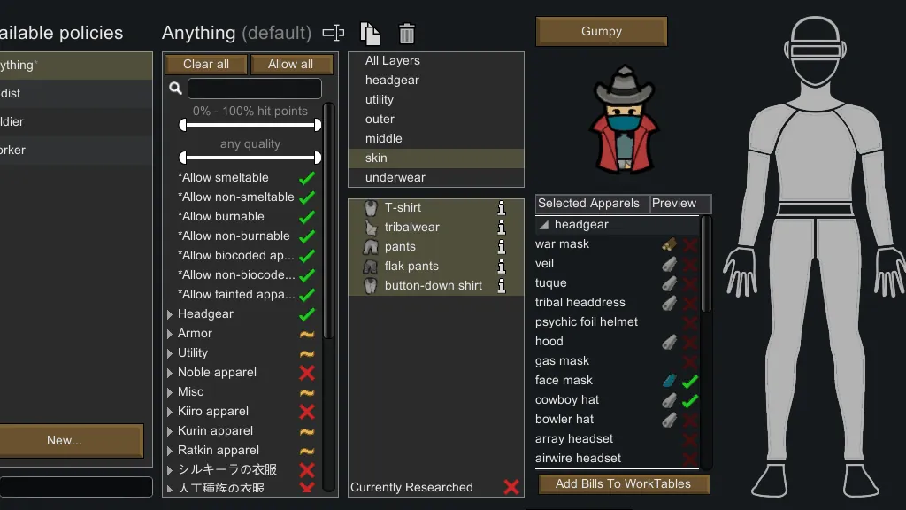 [*] Filter by apparels that can be worn by selected colonist