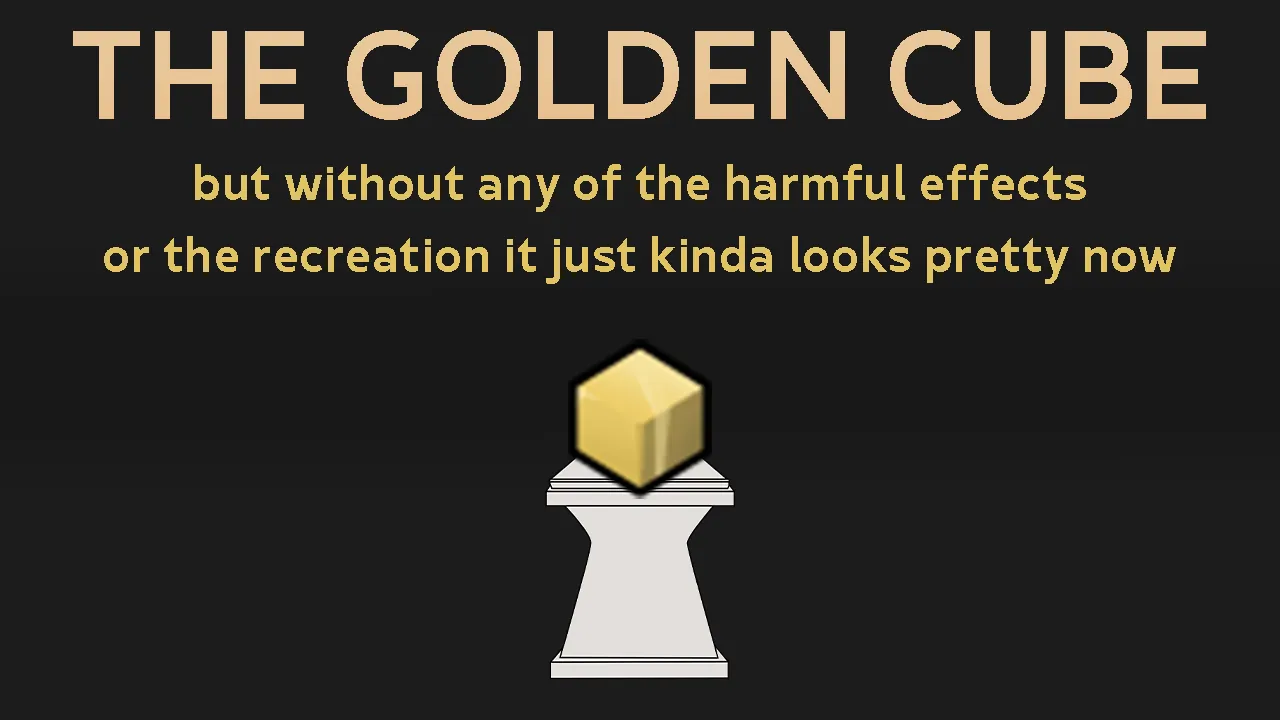 Adds an inert, purely decorative version of the golden cube that drops upon its deactivation. Retains the 400 beauty value, but cannot be studied or used for recreation. It's just a trophy.