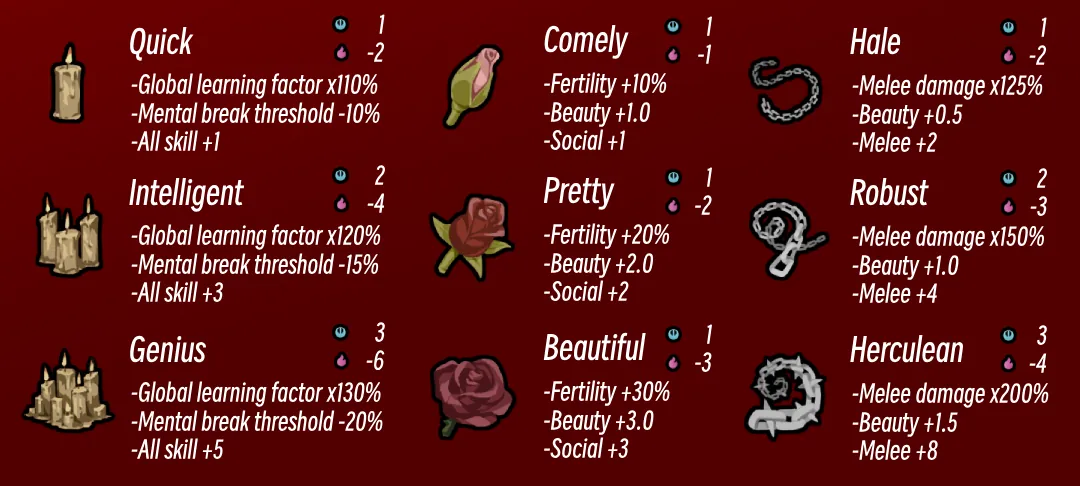 Added 9 CK3 traits as genes.