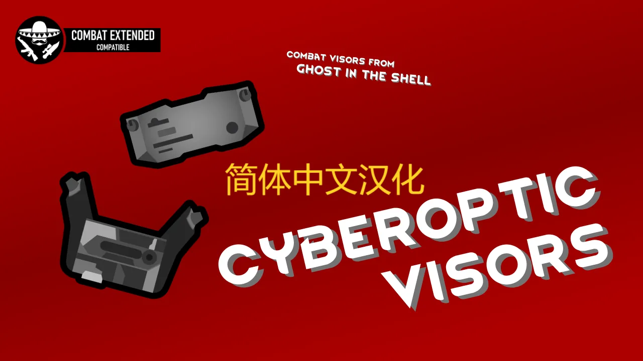 机翻+校对润色,简体中文汉化包(请注意本汉化包没有对CE环境适配)。原mod描述:受到 <i>攻壳机动队</i>世界观启发的赛博光学护目镜, 包含五种不同的战术护目镜,满足你的战术需求!