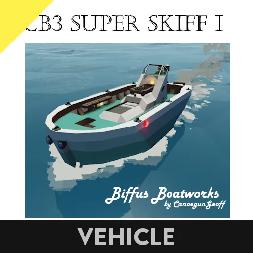 This CB3 Super Skiff I WSA model is powered by two small prefab engines and boasts an impressive fuel capacity, allowing for multiple, long range missions to be carried out with little interruption and at respectable speeds, for smooth early-game grinding at sea.