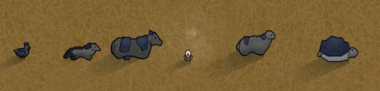 [*] (1.6) The threadstruct, a mimic of the humble sheep. Threadstructs consume kibble and the trace amounts of rare minerals found in stone chunks to generate synthread.