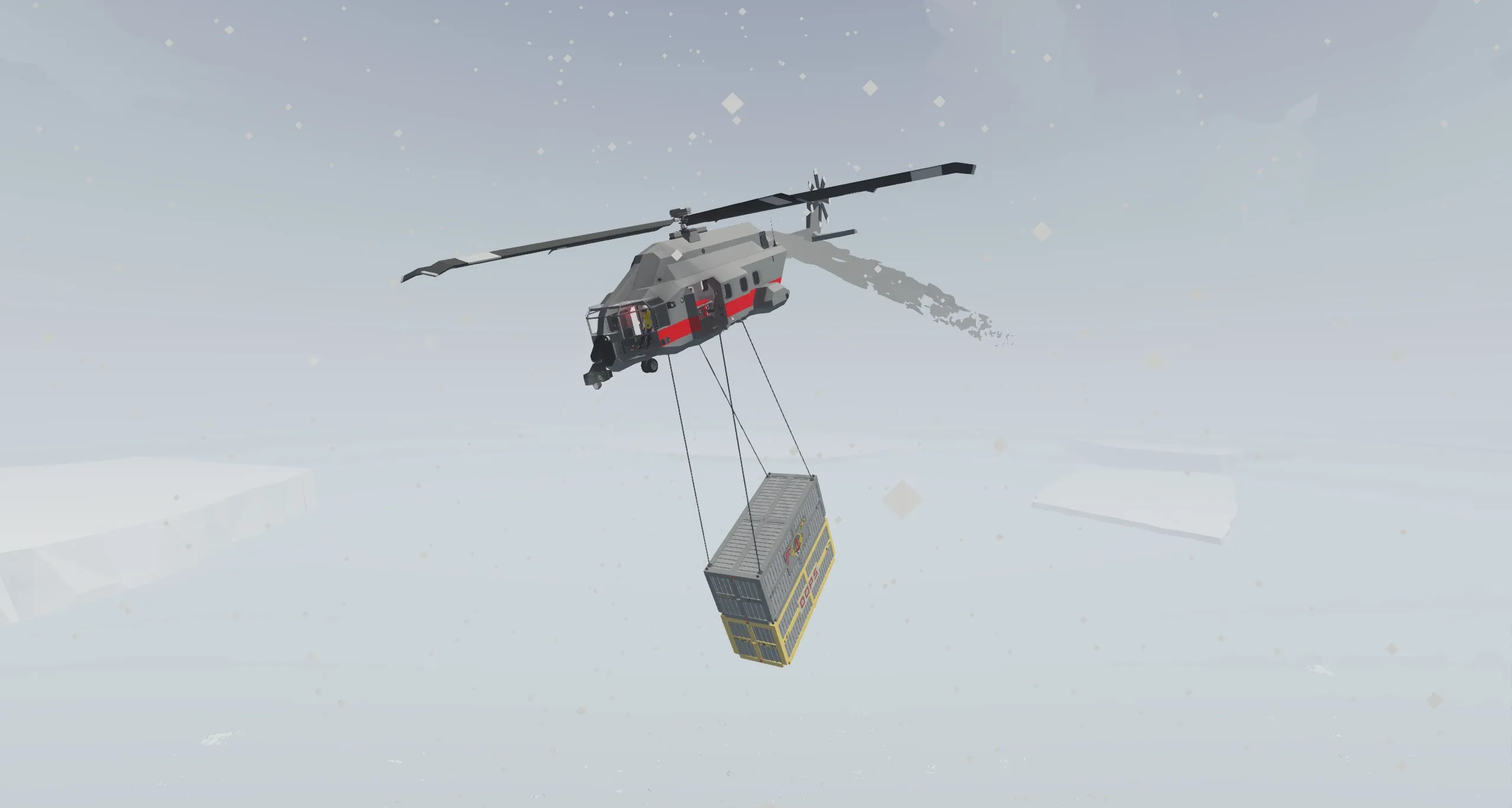 This helicopter is capable of carrying 2 loaded containers one way from the arctic zone to the main land, and still have enough loitering time to find more fuel. Arctic to Industrial/South area is not recommended, though it is likely possible. Without the cargo, the helicopter is more than capable of going between the arctic and Industrial zones.