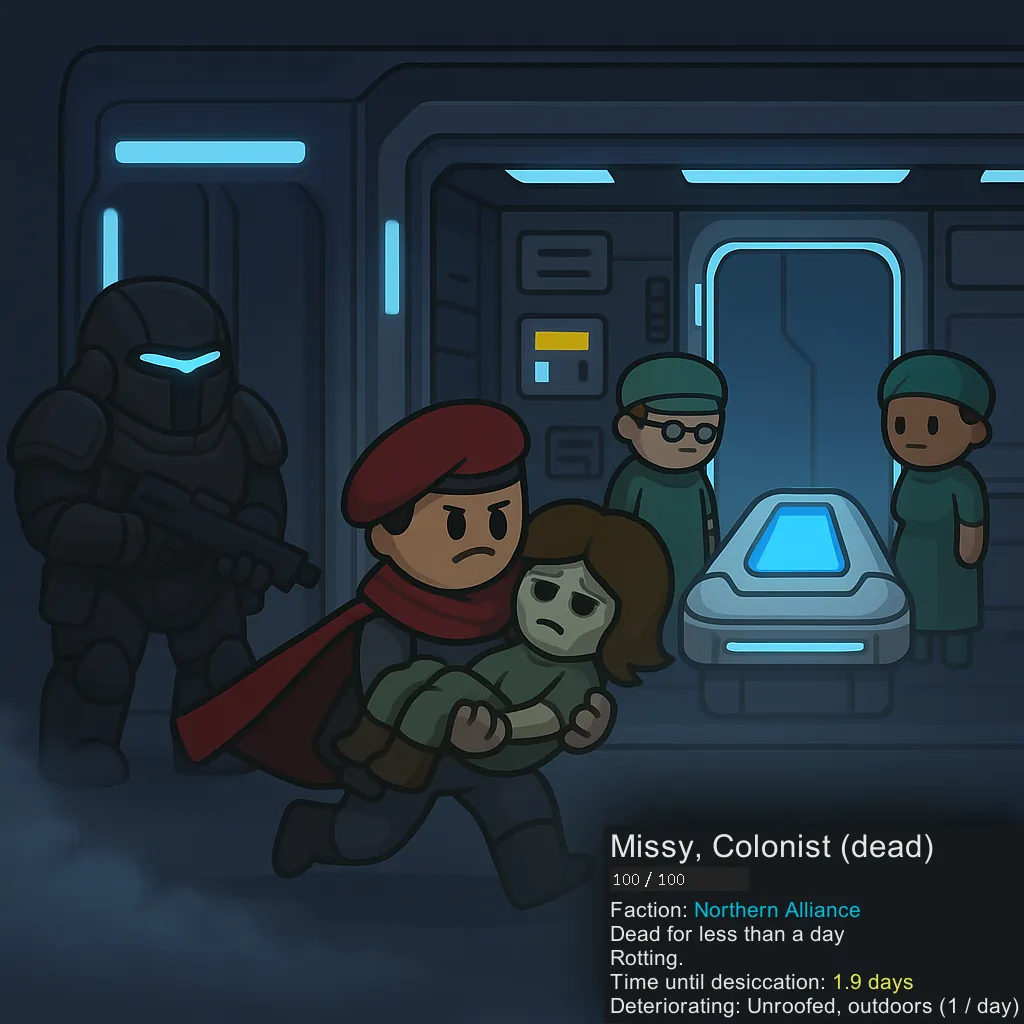 With this mod, you'll know the exact amount of time before that rotting corpse (whether human, animal, or insect) desiccates into a pile of bones... and that ressurector mech serum you've been questing for becomes utterly useless, forever.