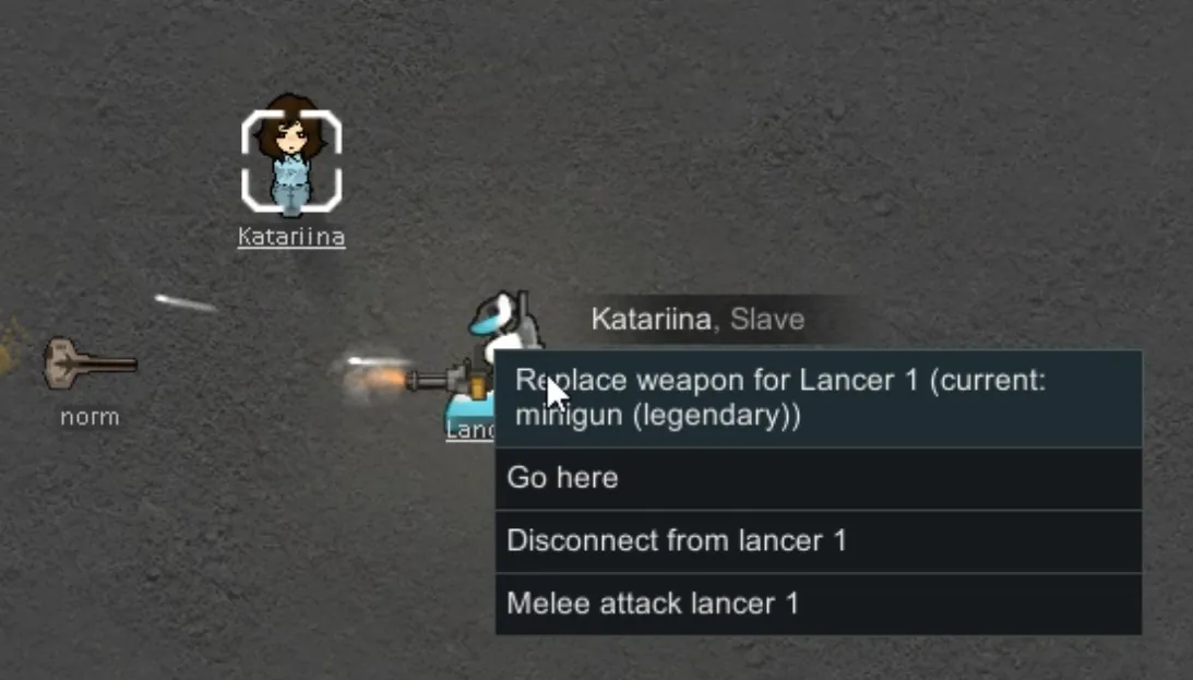 Click the weapon you want to equip — and boom, your mechanoid is rearmed!