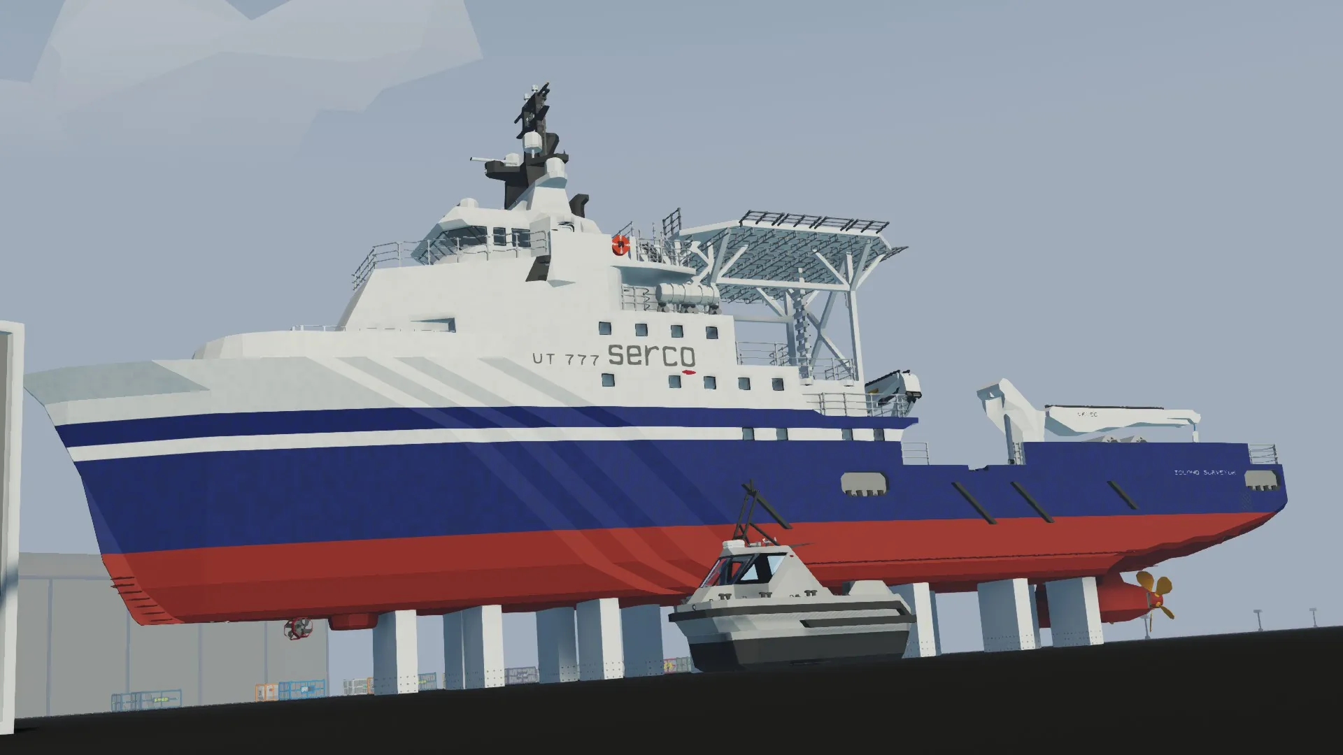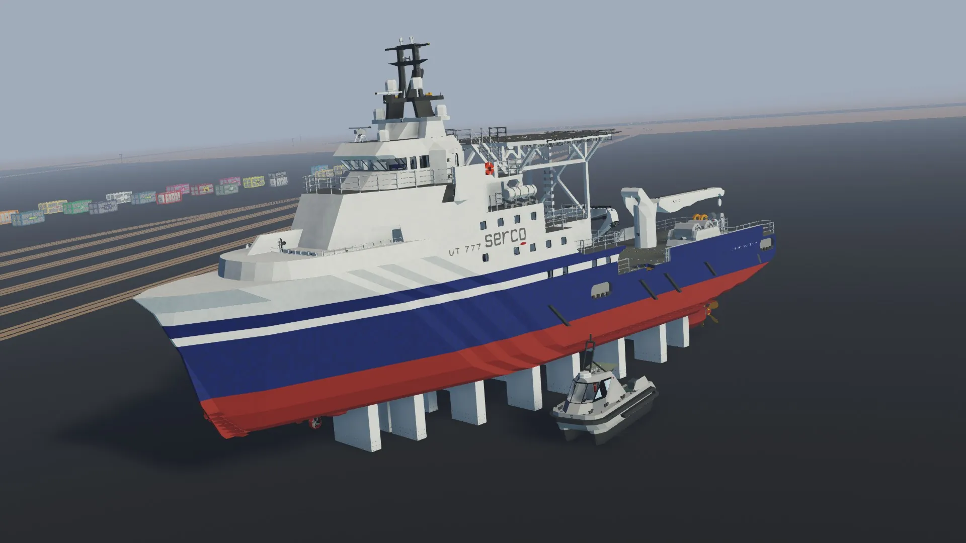 These vessels were repurposed by the Royal Imperial Maritime forces, capitalizing on their spacious aft cargo decks—once used for supply operations—to accommodate and deploy ALaRV (Automatic Launch and Recovery Vehicles), semi-autonomous MCM boats engineered for minehunting and disposal.
