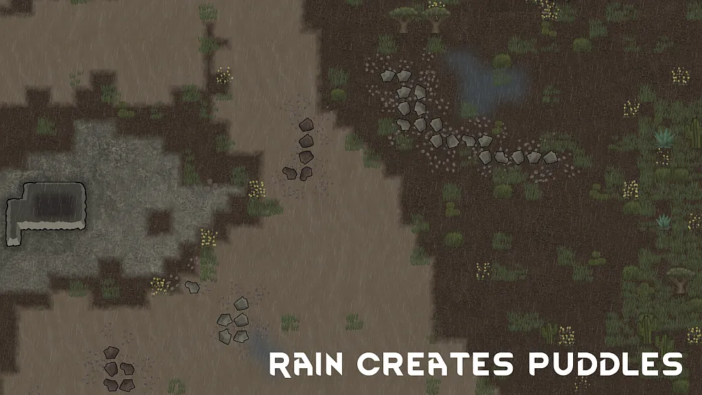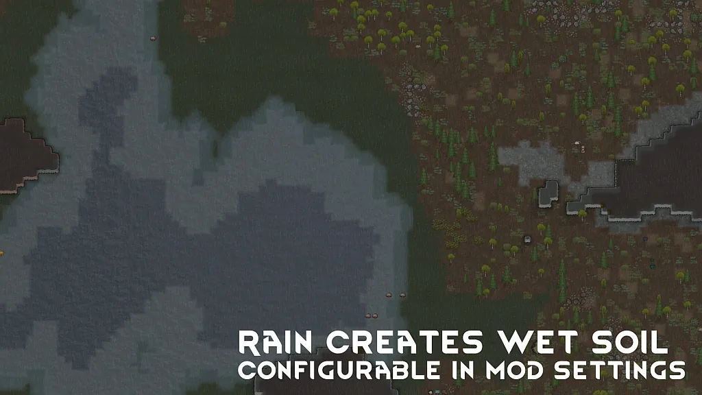 Rain can also cause the soil to become wet, increasing the fertility and decreasing movement of all soil tiles. This can be added in mod options.