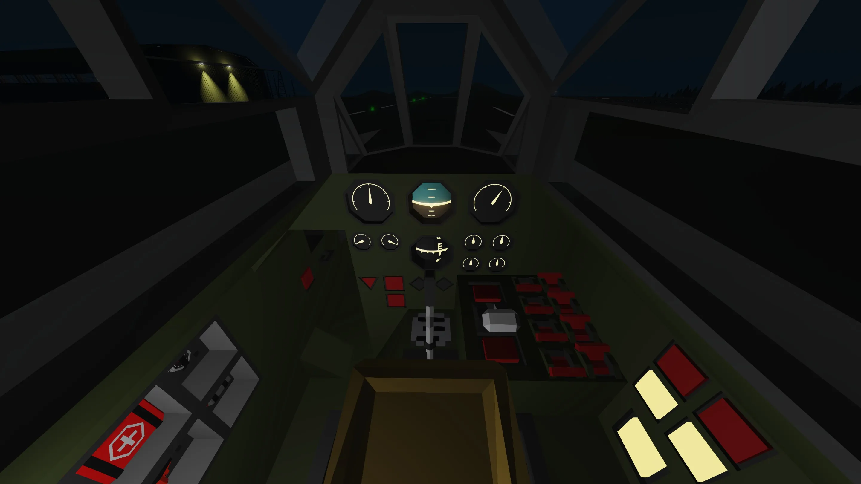 [*] Once all crewmembers are in the aircraft get in the pilot seat. Turn on any lights you want to use.