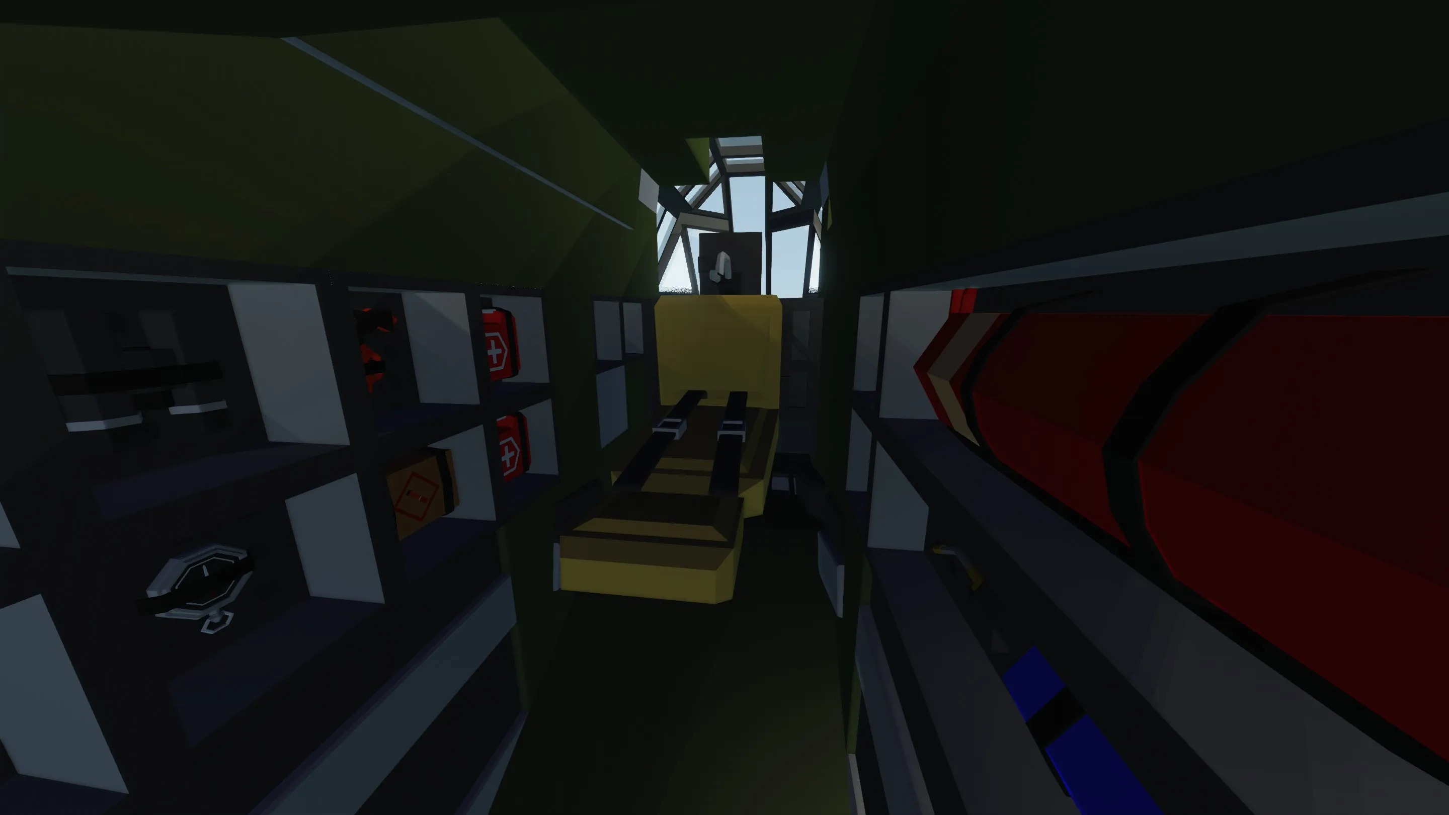 [*] Enter the aircraft through the hatch on the side. If the ladder does not work, use the handle to climb in.