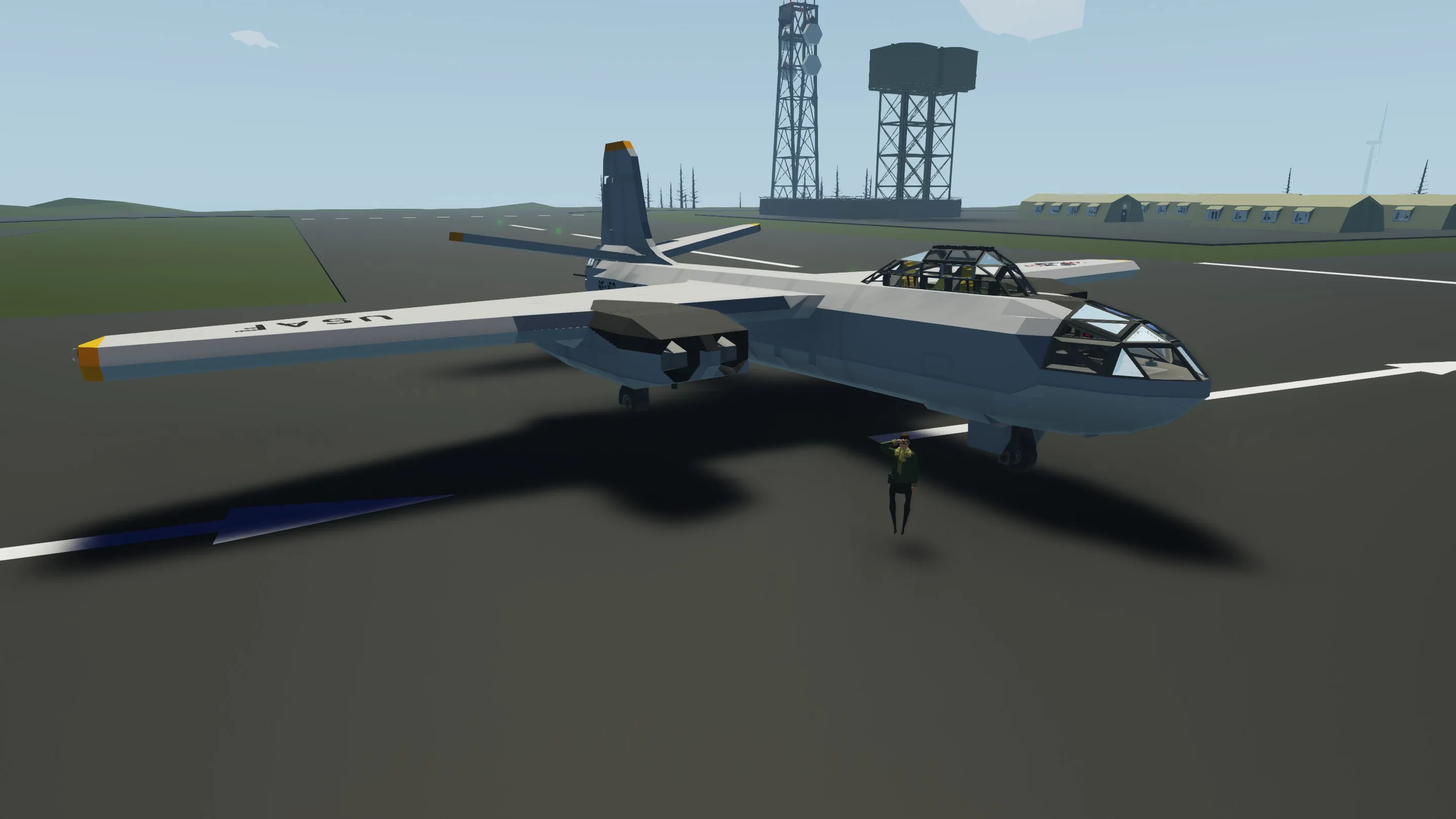 The B-45 Tornado is a jet-powered strategic bomber of the United States Air Force. I tried my best to recreate it as best as I could in the game, and it is probably my most detailed build yet. This recreation has a large bomb bay, working ejection seats, and (somewhat) realistic crew positions. It can be crewed by 1-4 players.