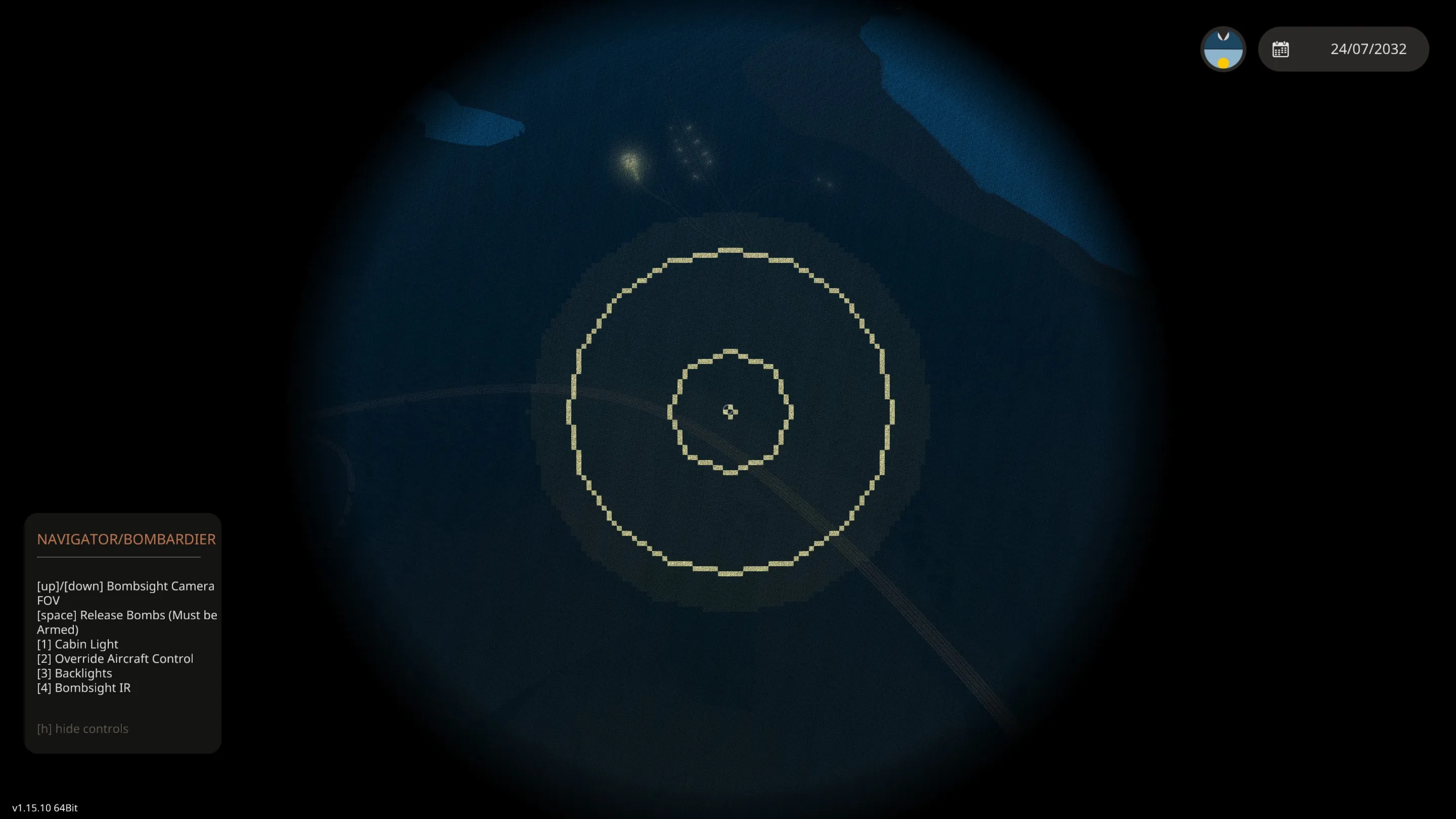 -For bombardier, the bombs are armed via a button. Spacebar will drop the bombs once armed. There is a bombsight but it is rather inaccurate especially for targets high above sea level.
