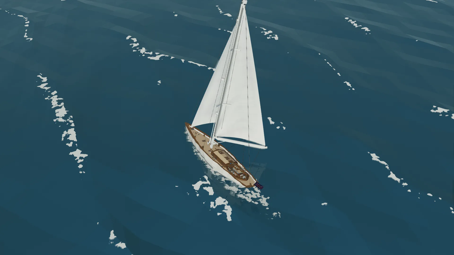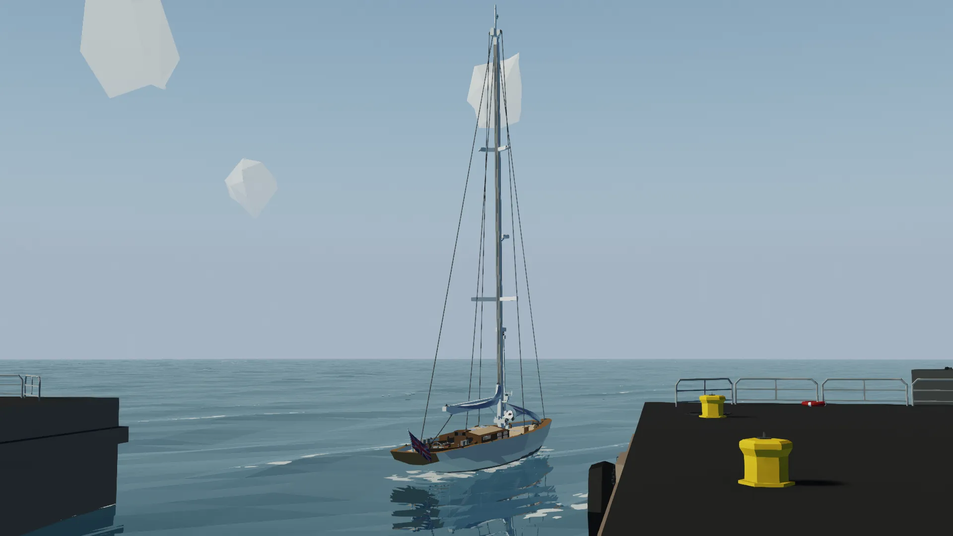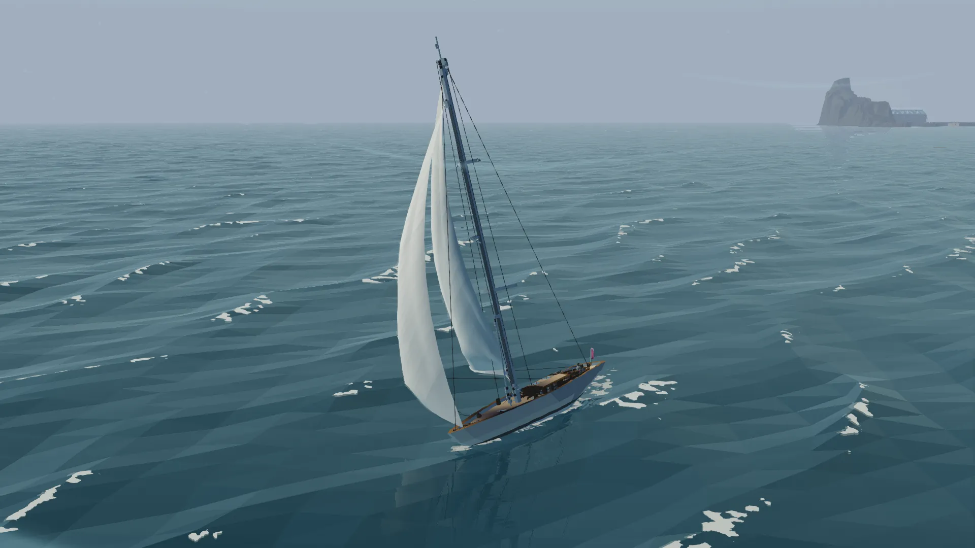 Firstly, attach the Halyard onto the Middle rope anchor, this is the one that faces in the direction on its own. There are 3 rope anchors at the bottom of the pole and 2 of them face down, and 1 faces up, attach it to the one facing up. Ensure that the Genoa Stow button in the sunken Cockpit is activated, so the Genoa is tucked close to the mast. Unattach the rope from the Winch of the Tack that you plan to have the pole lean out towards from the Clew of the Genoa, and then attach it to one of the 2 remaining rope anchors. Then finally acquire a rope from one of the 2 rope lockers in the sunken cockpit and attach the final rope anchor on the jib pole to the middle standalone Rope Anchor on the clew of the Genoa, Once this is done you are ready to go, hoist up the Genoa and unstow it, then interact with the bottom of the Jib pole to release it from its position, the pole may flap about but fret not: use the halyard controls on the side of the mast to hoist up the Jib pole to the level you want, ideally it should be perpendicular to the mast. And then use the Genoa Winch to haul it backwards, ideally perpendicular to the beam of the boat. Happy downwind Sailing, just make sure not to tack or Jibe.