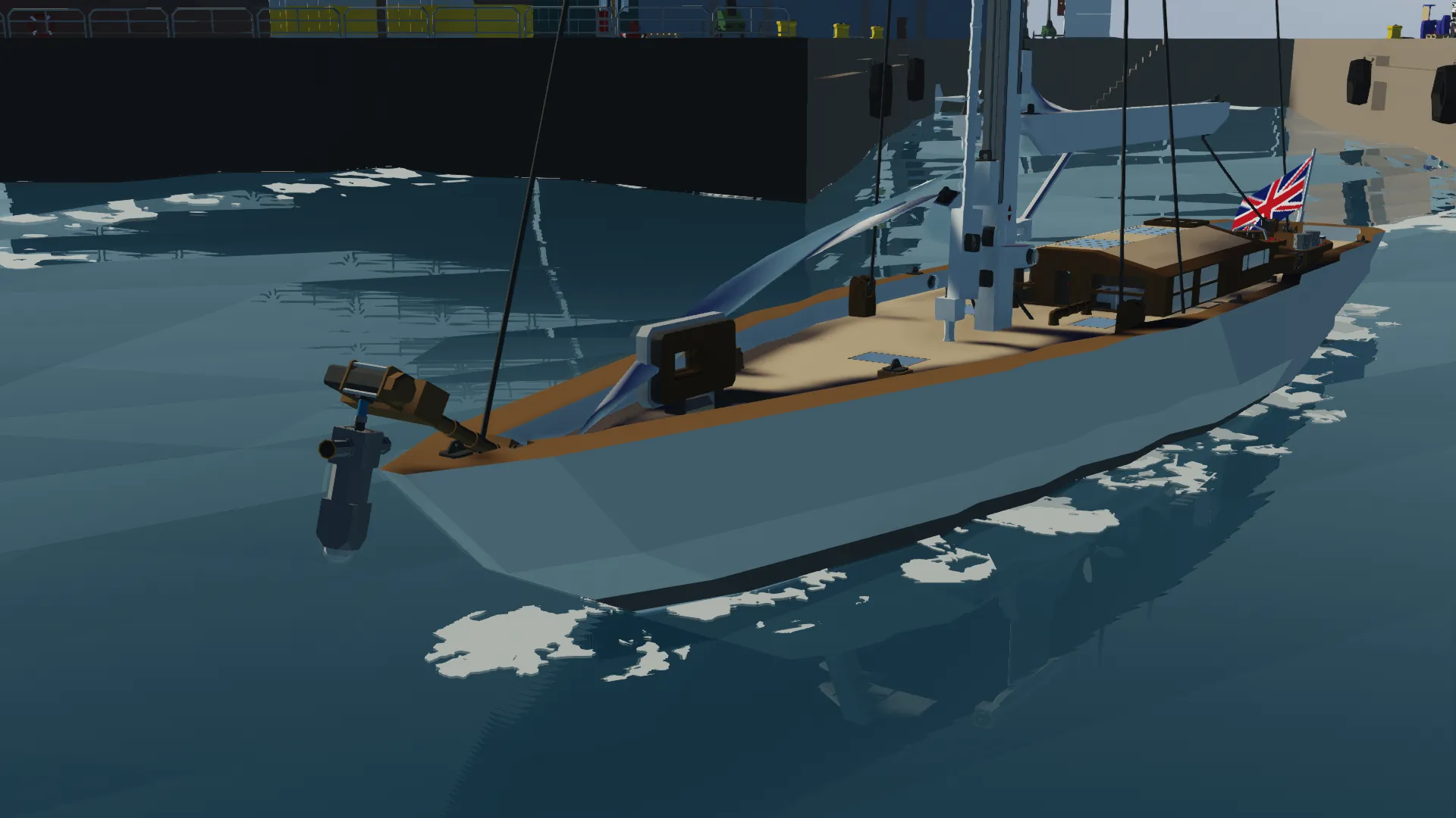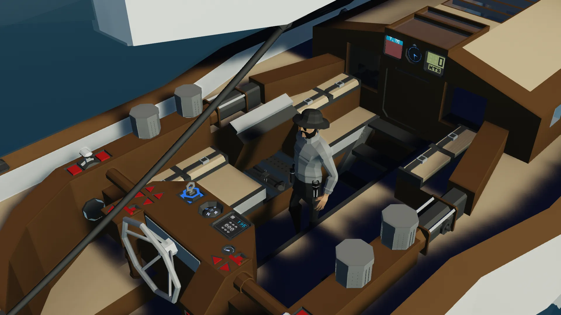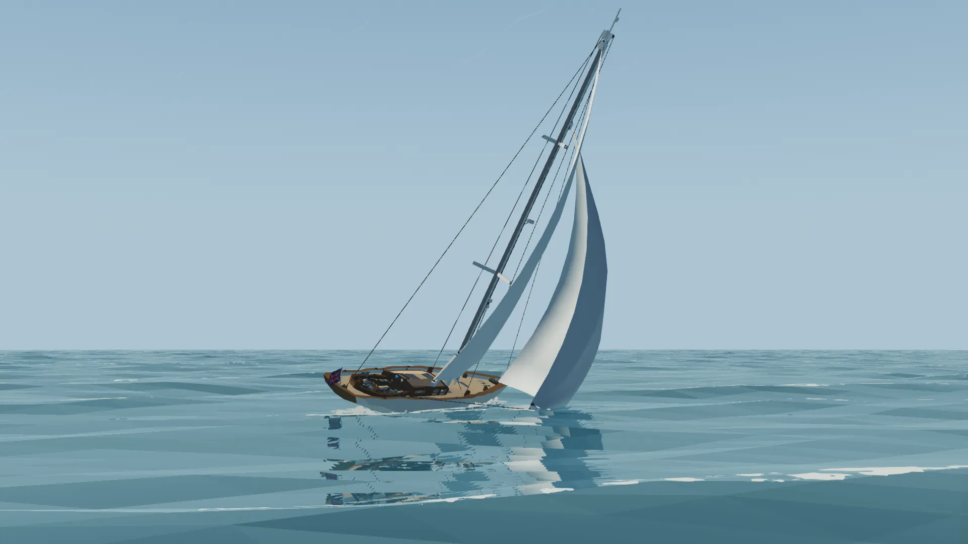 Firstly, attach the Halyard onto the Middle rope anchor, this is the one that faces in the direction on its own. There are 3 rope anchors at the bottom of the pole and 2 of them face down, and 1 faces up, attach it to the one facing up. Ensure that the Genoa Stow button in the sunken Cockpit is activated, so the Genoa is tucked close to the mast. Unattach the rope from the Winch of the Tack that you plan to have the pole lean out towards from the Clew of the Genoa, and then attach it to one of the 2 remaining rope anchors. Then finally acquire a rope from one of the 2 rope lockers in the sunken cockpit and attach the final rope anchor on the jib pole to the middle standalone Rope Anchor on the clew of the Genoa, Once this is done you are ready to go, hoist up the Genoa and unstow it, then interact with the bottom of the Jib pole to release it from its position, the pole may flap about but fret not: use the halyard controls on the side of the mast to hoist up the Jib pole to the level you want, ideally it should be perpendicular to the mast. And then use the Genoa Winch to haul it backwards, ideally perpendicular to the beam of the boat. Happy downwind Sailing, just make sure not to tack or Jibe.