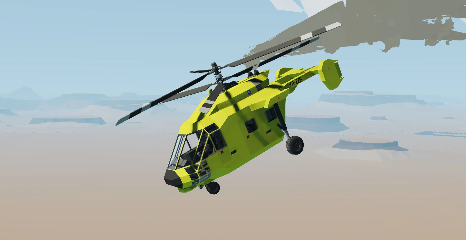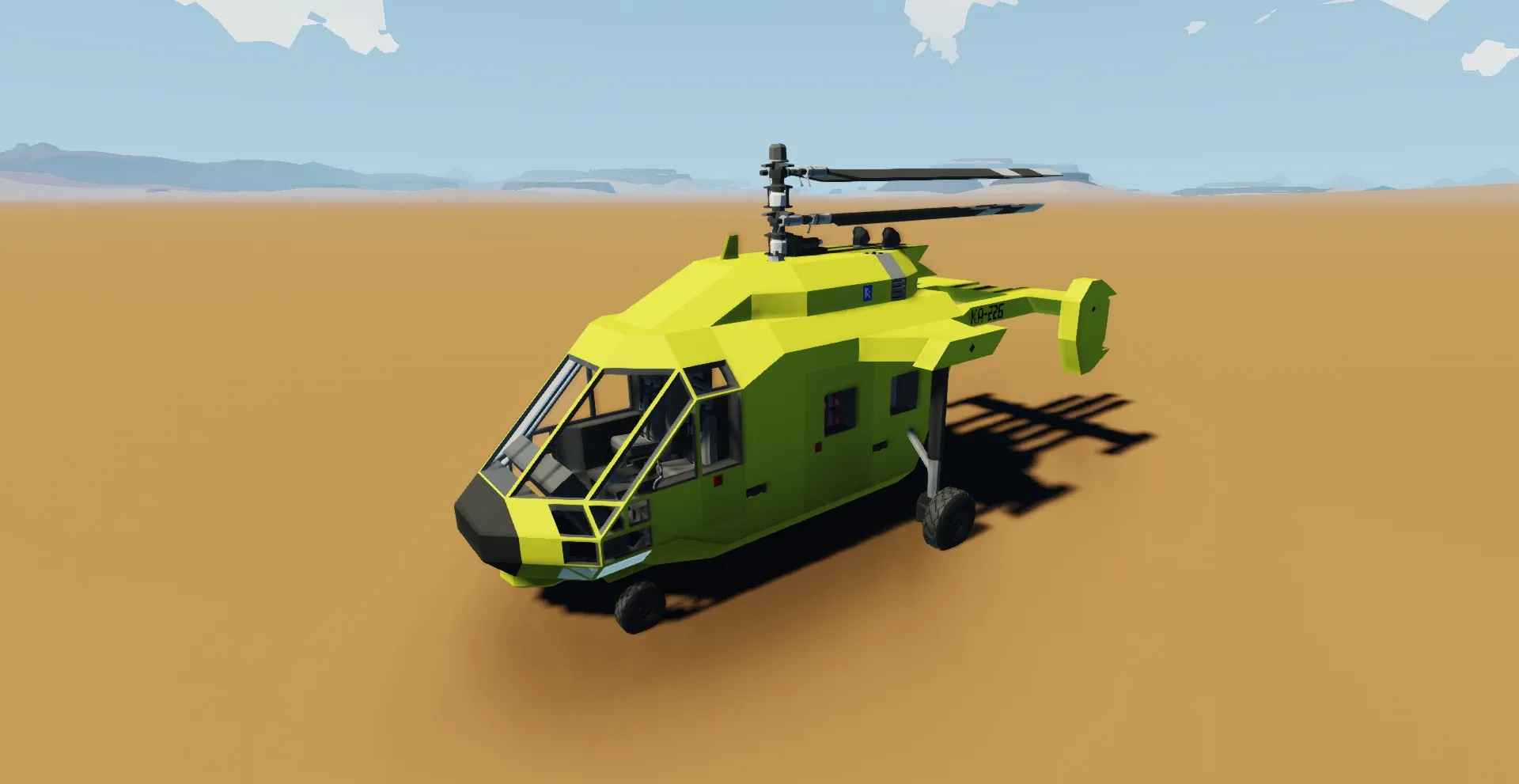 Helicopter can be used for exploration, transporting and rescuing. Can carry 5 passangers.